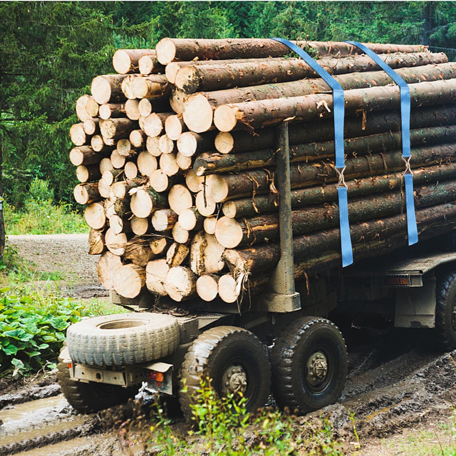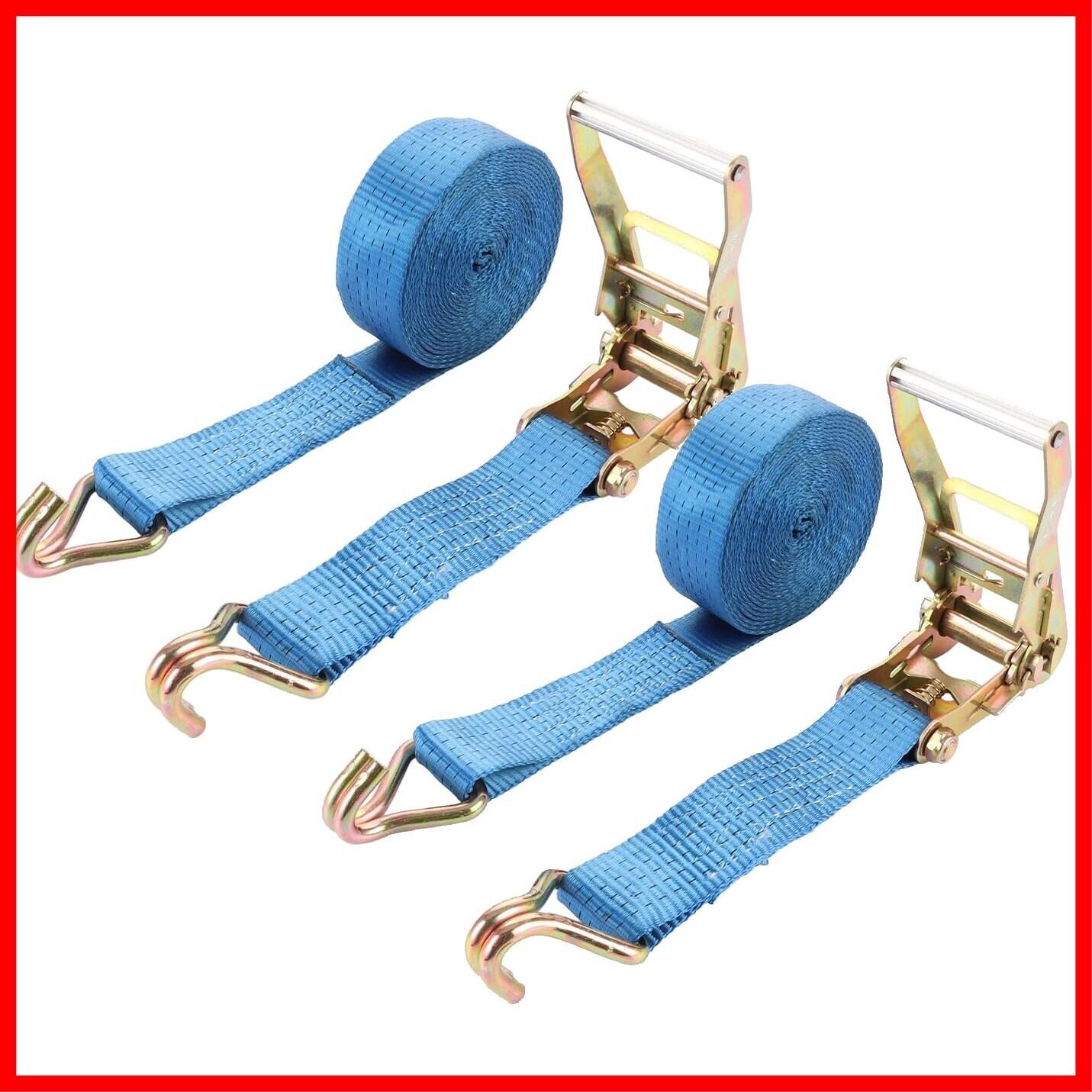 商品詳細:セット内容:2本組 ベルト長:6m;ベルト幅:5cm;破断強度:800kg;最大使用荷重:300kg;ソフトループ タイダウンストラップ2本、ポリエステル素材、高強度鋼製造ラチェット