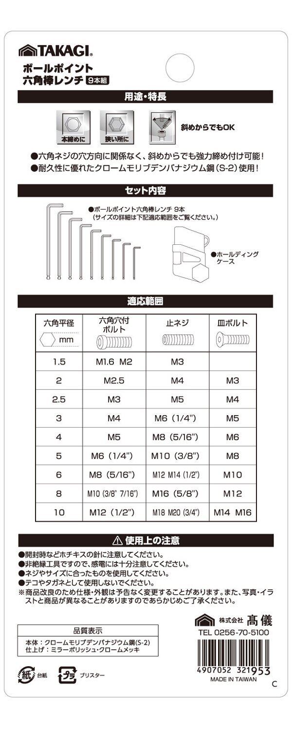 セット内容:1.5/2/2.5/3/4/5/6/8/10mm