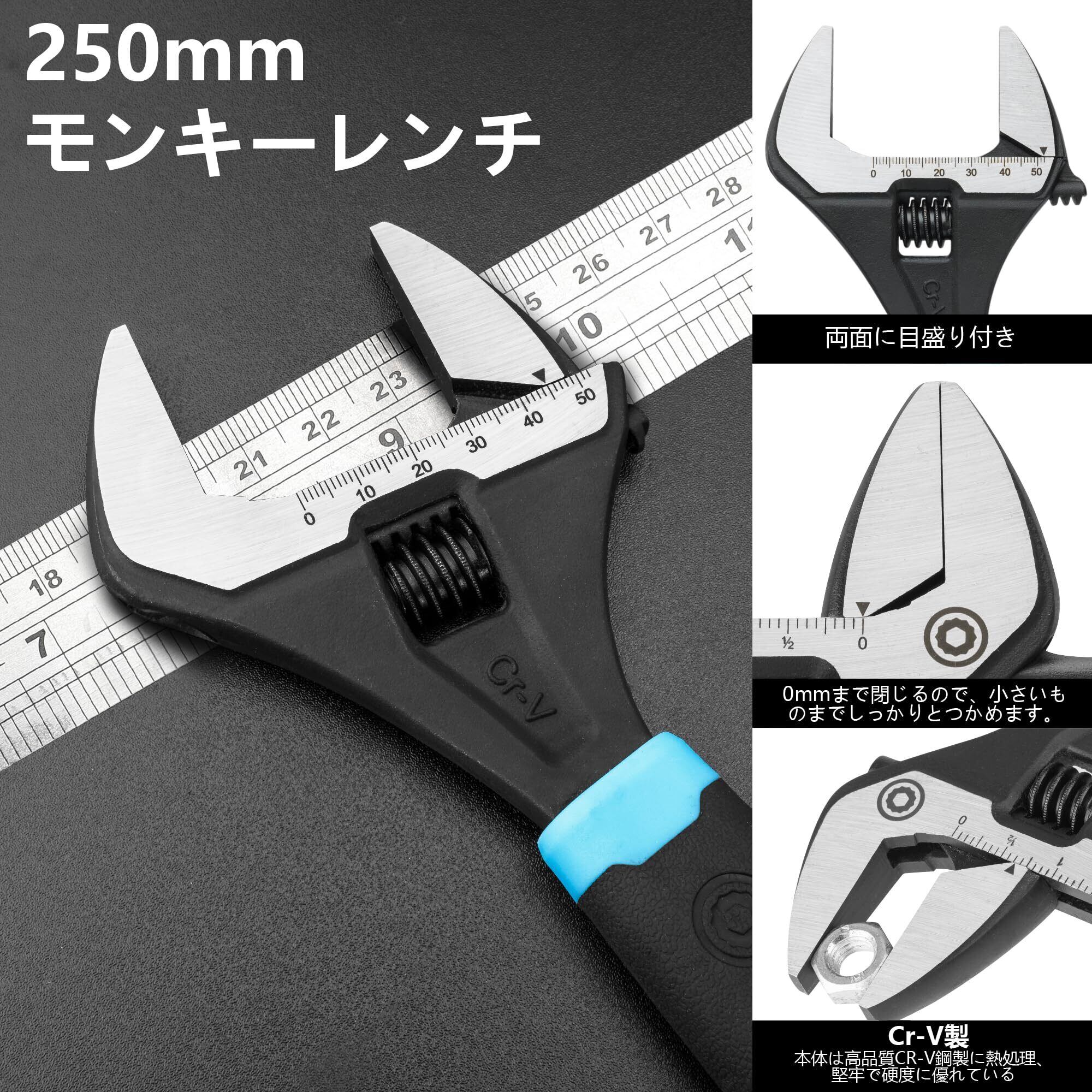 【2022最新】DURATECH モンキーレンチ ワイド アジャスタブルレンチ 多機能スパナ 250mm 最大開口50mm 調整可能 目盛付 ゴムマット付 CR-V 水道管 配管 自動車 自転車 オートバイ修理 機械修理 メンテナンス | Cherry Blossoms