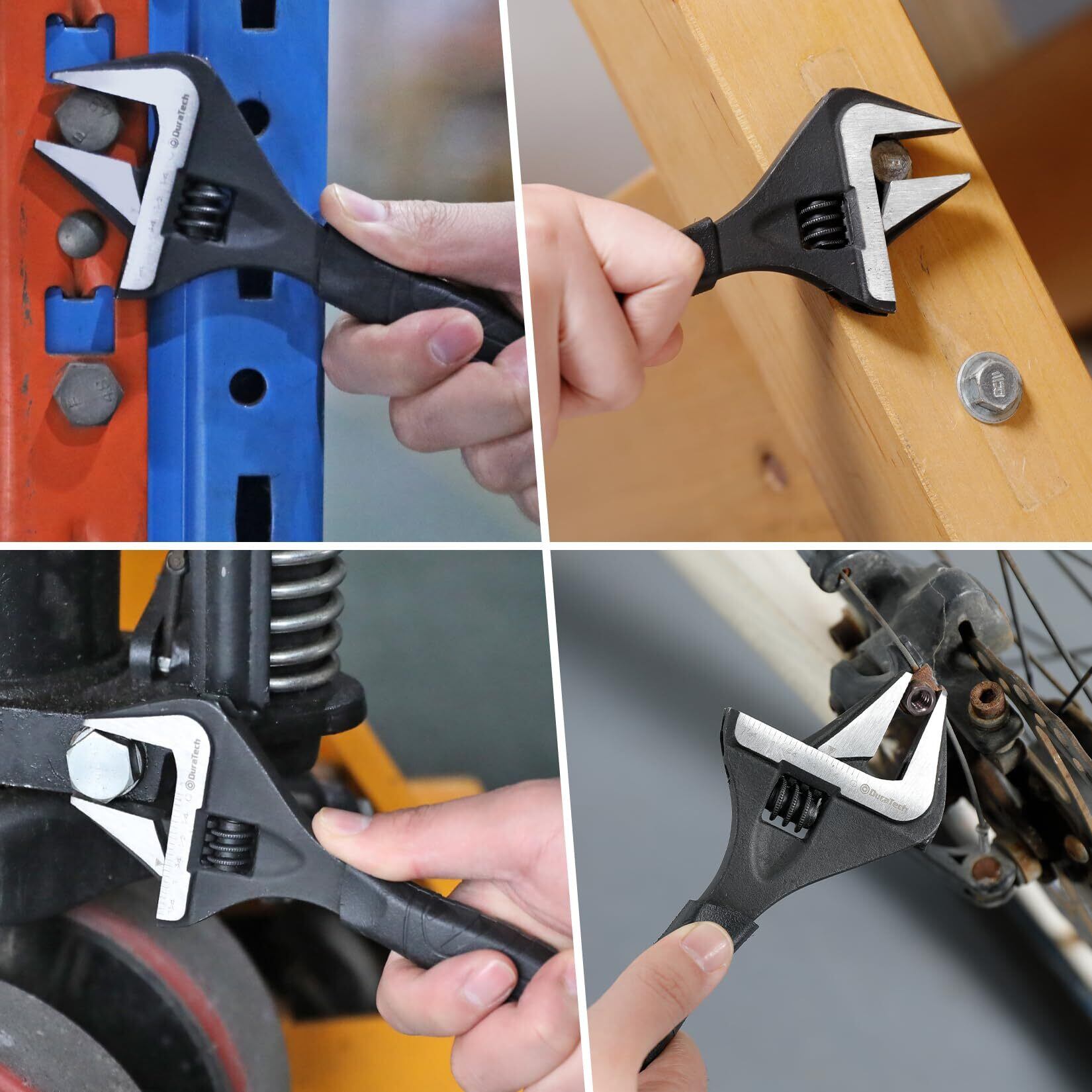 【仕様】全長約200mm(8")で、スムーズに口幅が調整でき最大41mmまで可能です。本体上部に調整可能なウォームギア設計により、幅広いネジサイズに対応できます。ウォームギアを調節することがやすくて、軍手をはめたままでもウォームギアを調節できます。
