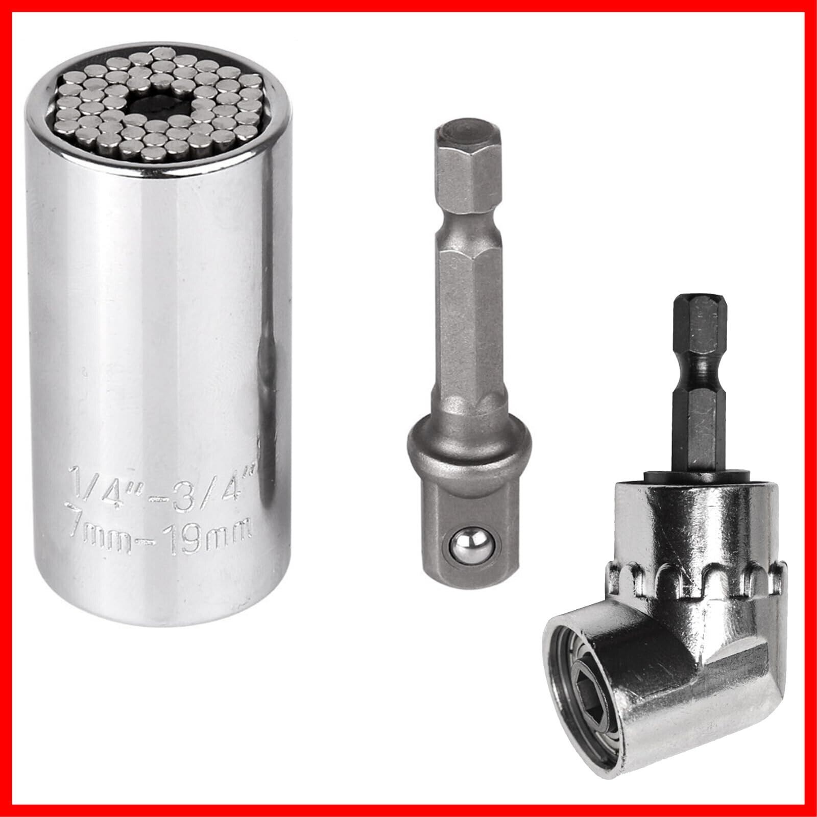 【在庫処分】DFsucces ユニバーサルソケット & L型 ソケットレンチ 3点セット 7~19mm(1/4~3/4インチ)対応 万能ソケット 54本スチールのピン内蔵 多機能 3/8インチ DIY ドリルアダプター付き 作業工具 | Cherry Blossoms