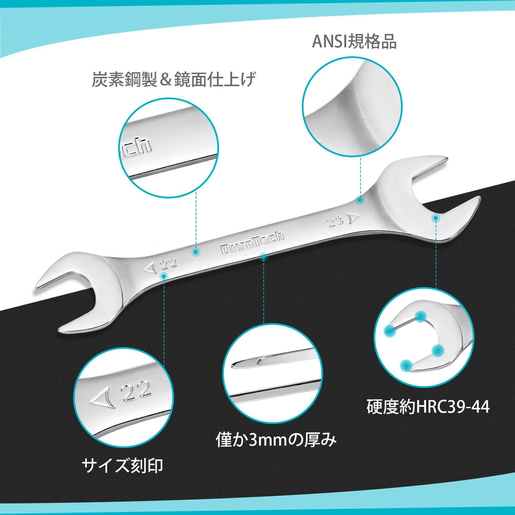 DURATECH 極薄スパナ 薄型 スパナセット 8本組 ショートタイプ 両口 ミニ レンチセット 厚さ3mm 5.5~27mm 鏡面仕上げ済 収納袋付