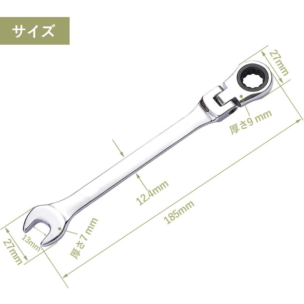 DFsucces フレックスラチェットレンチ 片口スパナ 72ギヤコンビネーションレンチ 両用ヘッド 首振りラチェットレンチ スパナ 角度調整可能 (13MM)