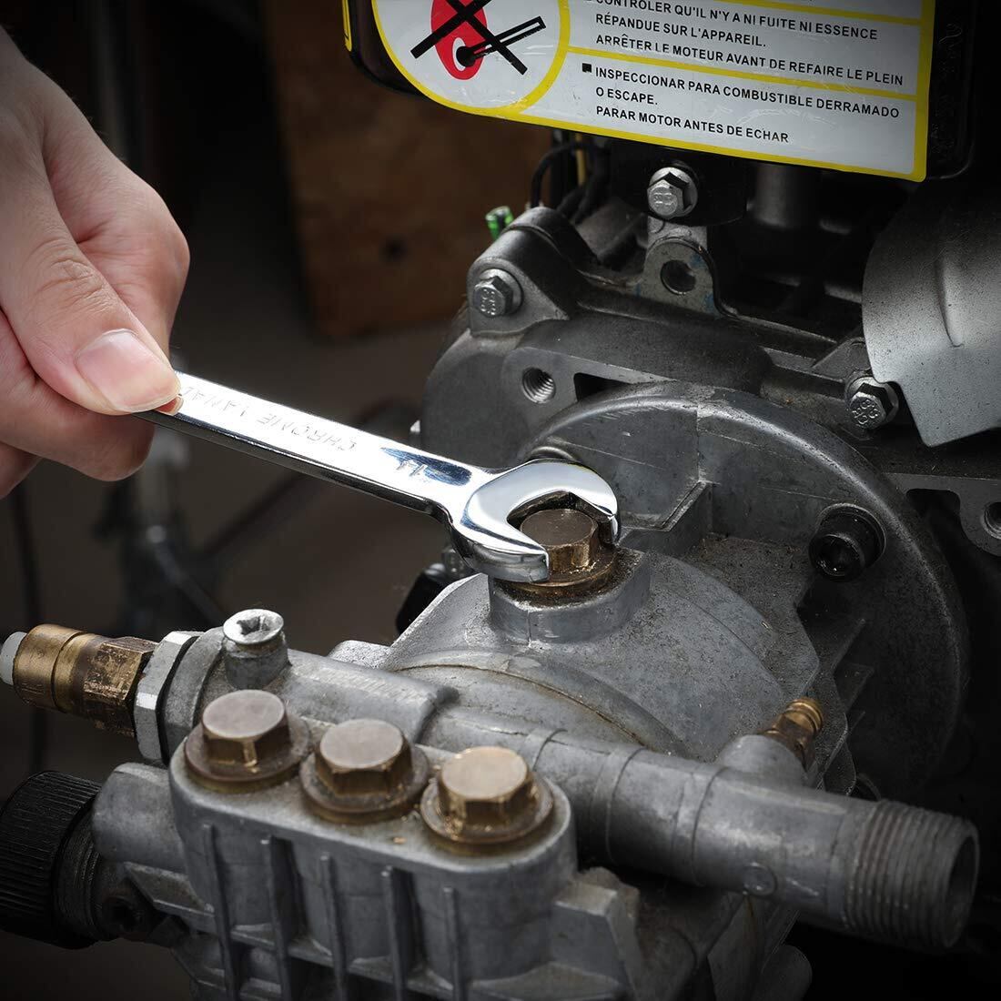【使い勝手良い】メガネ部分が首振りタイプで0~180°角度調整できて、障害物を避けたり、持つ手のスペースも確保できます。12角サーフェスでボルト・ナットの角を舐めにくくて入りやすくて、ラチェット部に回転方向を示す矢印があり更に便利です。