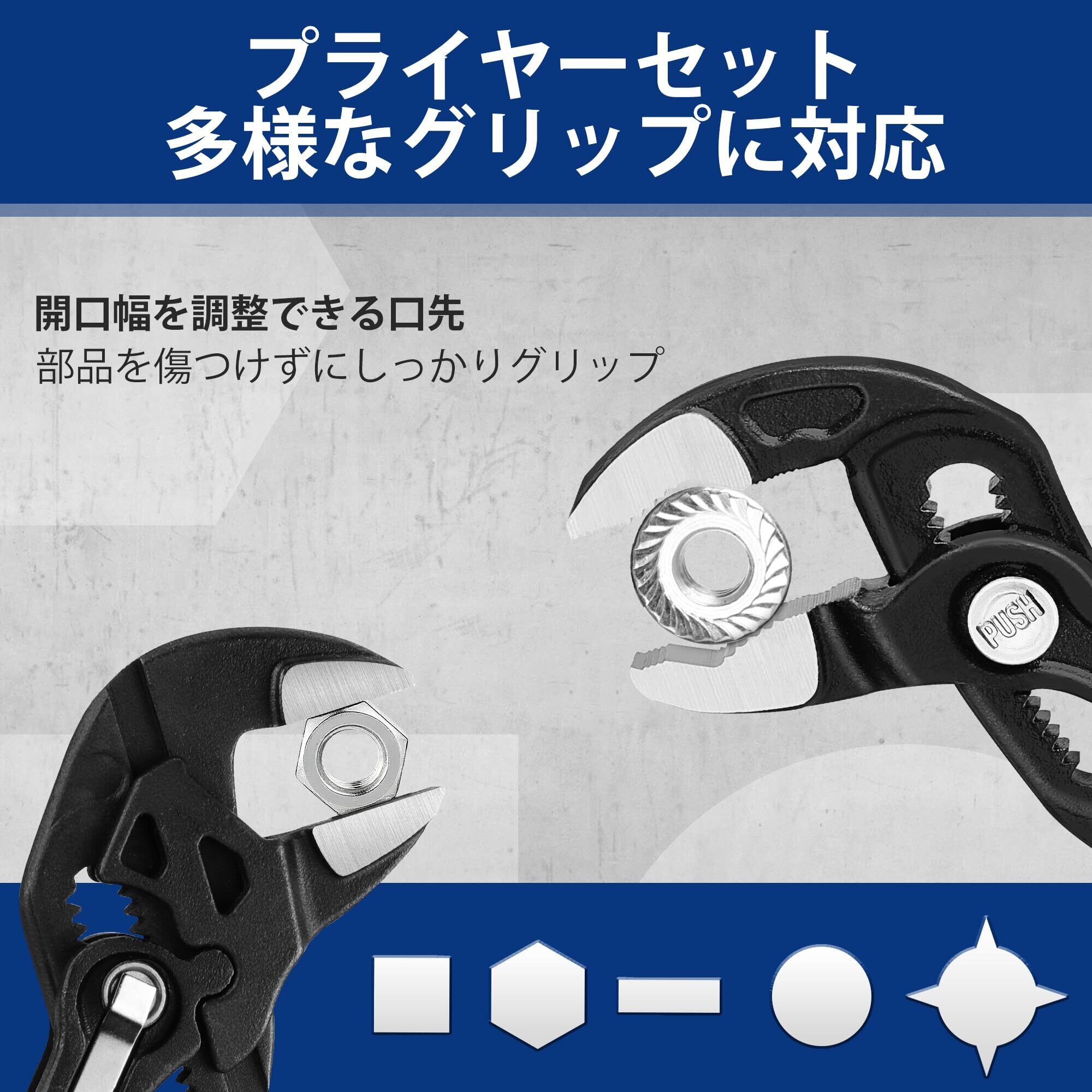 【商品仕様】ウォータポンププライヤー:全長:180mm、最大口開き:42mm、重量:200g、Cr-V材質。プライヤーレンチ:全長:180mm、最大口開き:40mm、重量:240g、Cr-V材質。