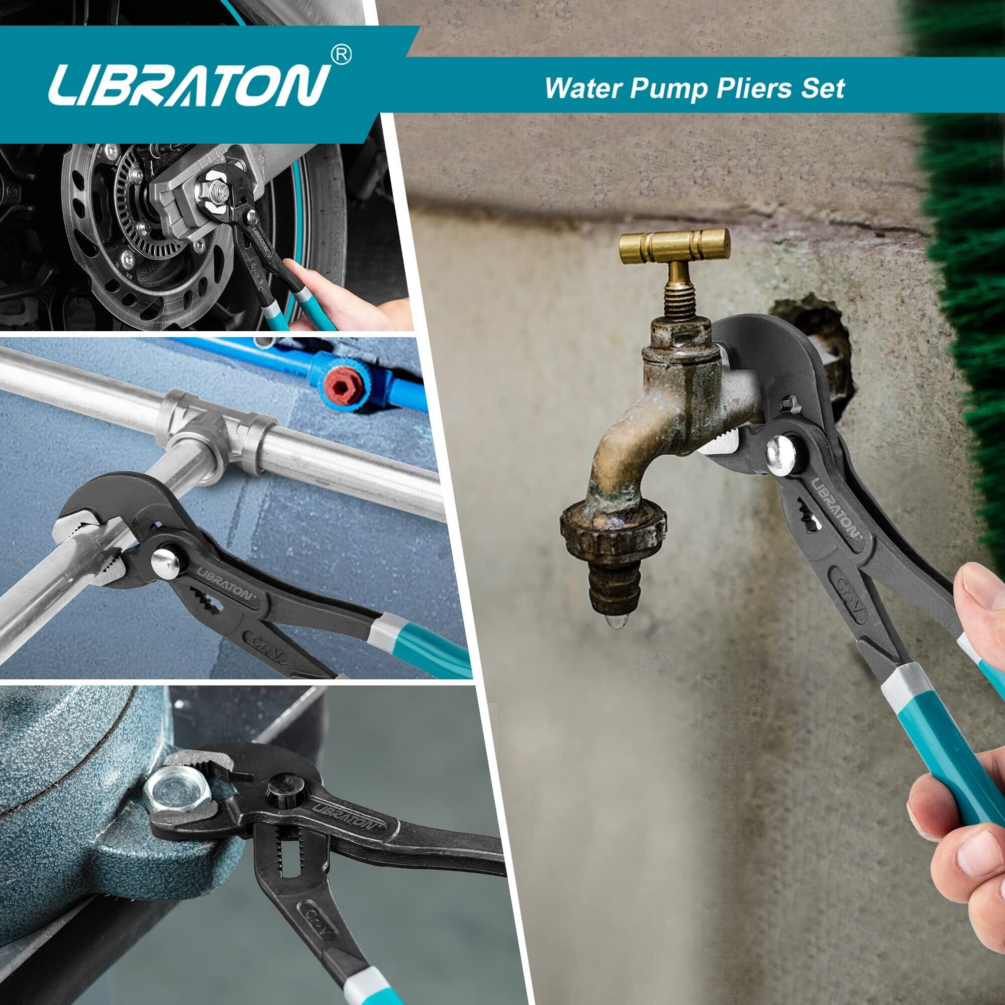 LIBRATON ウォーターポンププライヤー 3本組 175 240 300mm CR-Vスチール プライヤーレンチ 配管工具 ケース付き