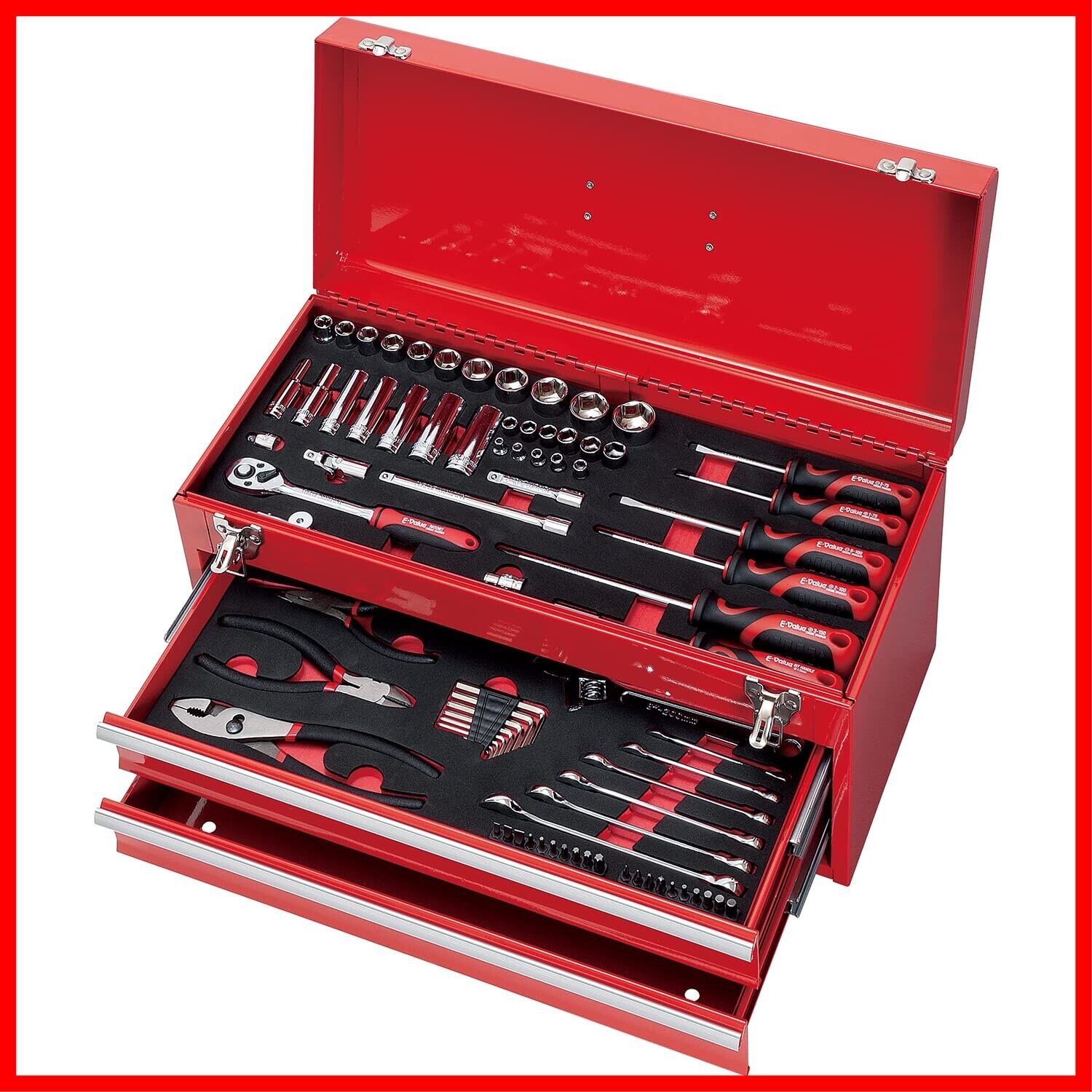 イーバリュー(E-Value) 整備工具セット ツール80点+ツールチェスト レッド EVAマットトレー仕様 各種メンテナンス作業対応 バイク 自動車 EST-2280RE