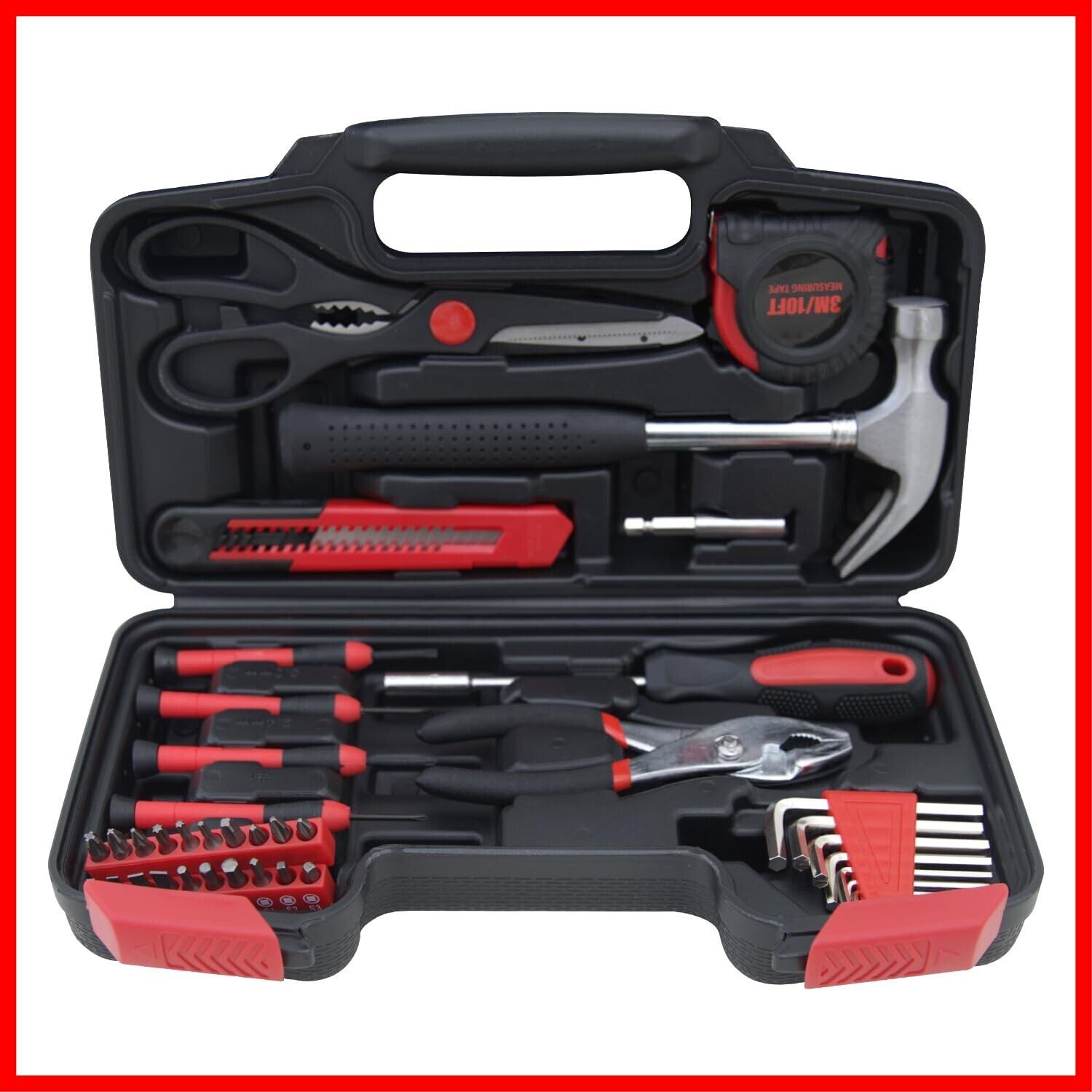 Hantinstom 工具セット 39点組 ホームツールセット 道具セット 作業工具 DIY 家具の組立 住まいのメンテンス用 便利 収納ケース付き 修理道具セット 初心者も向け 自動車バイク整備 レッド