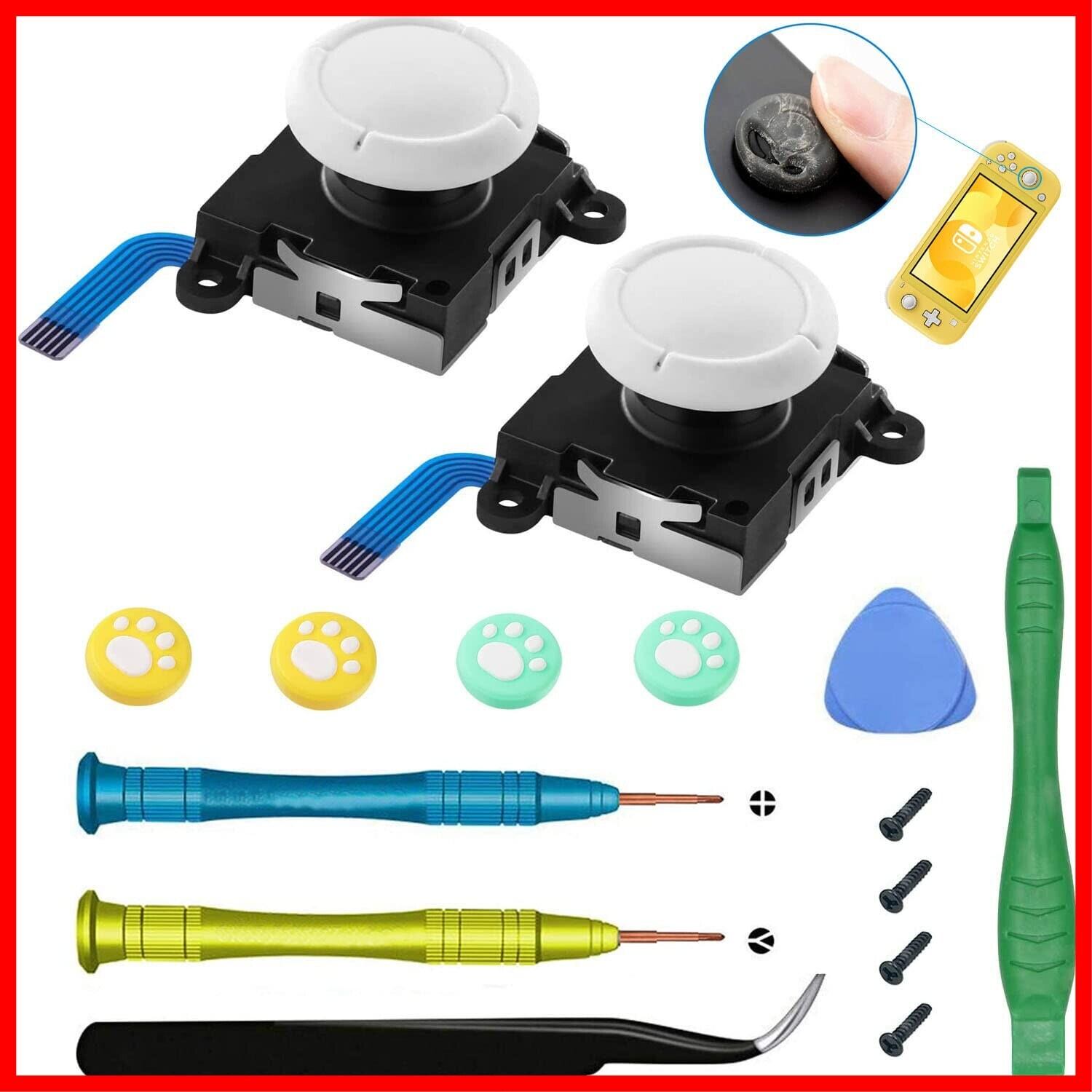 Switch Lite アナログジョイスティック 交換用, 2個 ジョイスティック 右/左 センサ 修理工具キット付き,トライウィング、クロスドライバー、こじりツール+ 4つのサムスティックキャップを含む
