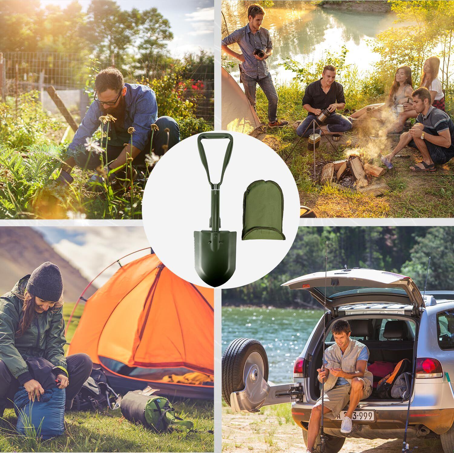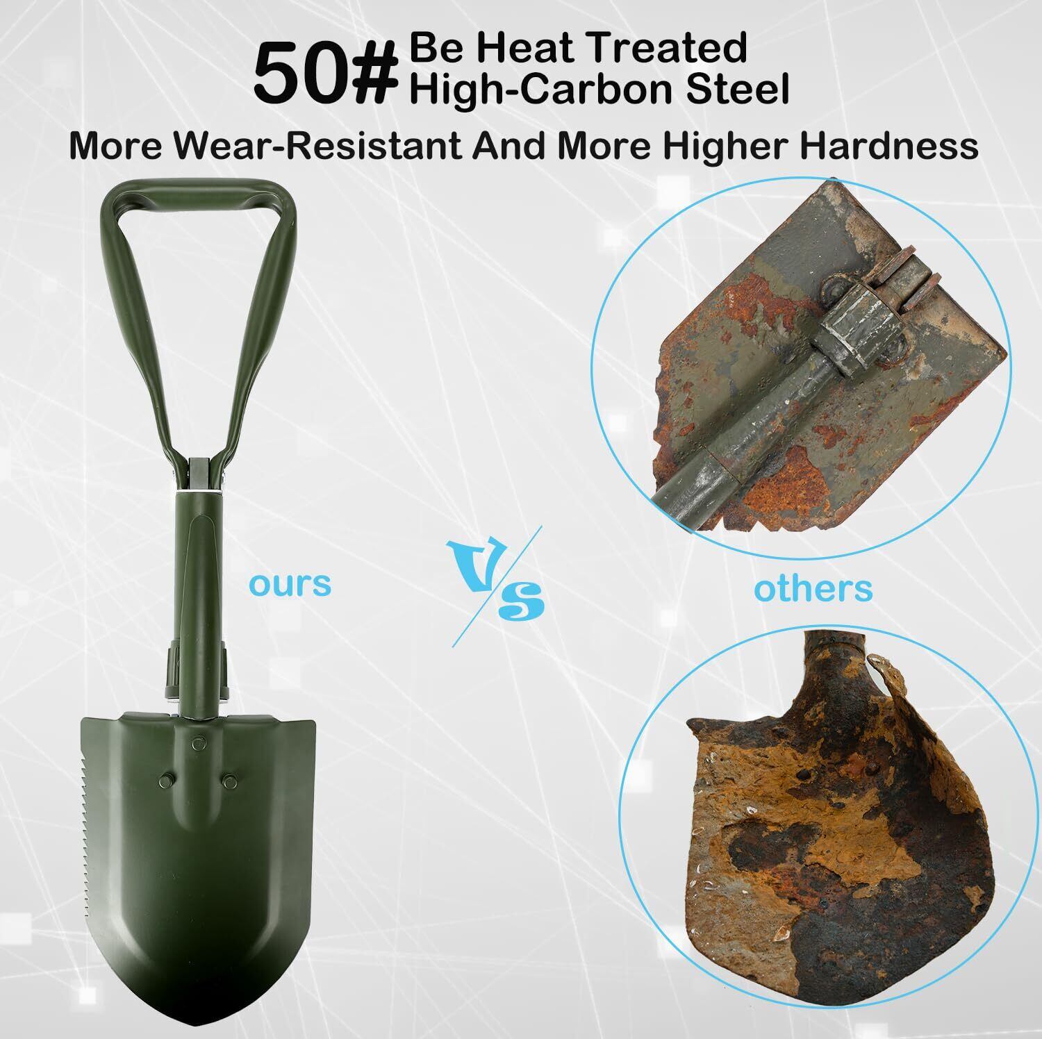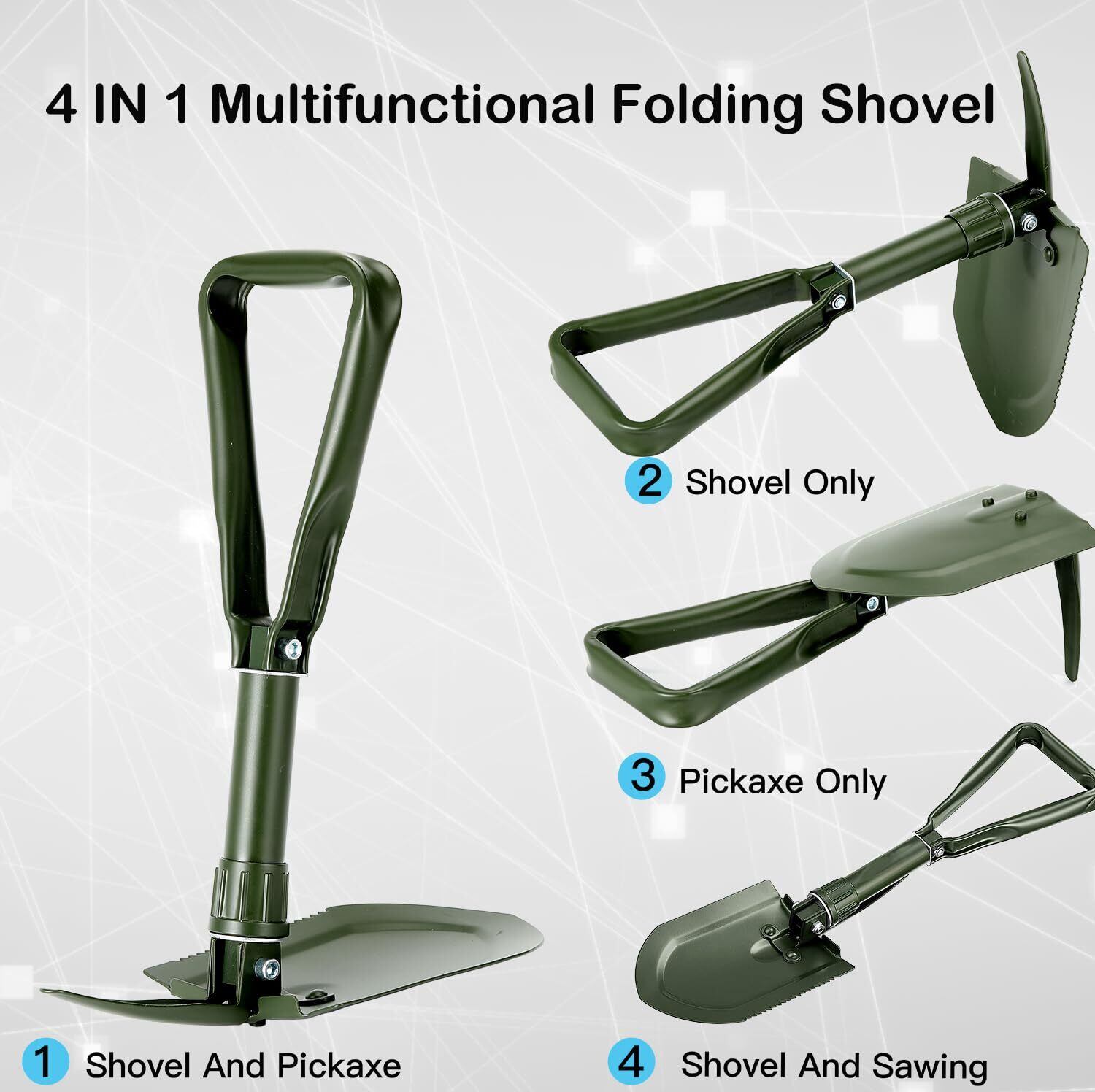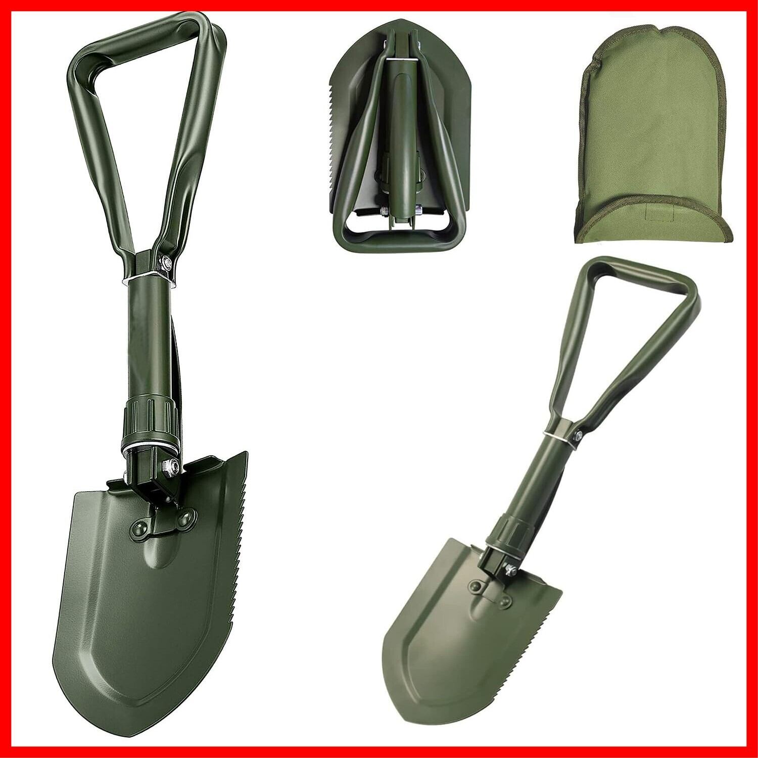 【人気商品】キャンピングシャベル58cm,スコップ 雪かき, 50#高炭素鋼埋め込み工具, シャベル 多機能シャベル ミニ 折りたたみ式 収納バッグ付き 7機能 登山 キャンプ アウトドア 雪かき 冒険 防災 (Green) | Cherry Blossoms