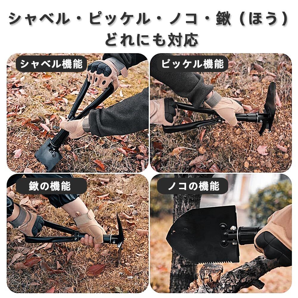 【多機能設計で便利なツール】45#炭素鋼製で耐久性が高く、シャベル、鍬、ツルハシ、ノコギリの4役をこなす多機能ツールです。キャンプや登山、ガーデニング、雪かきなどのアウトドア活動に最適。防災用にも重宝します。