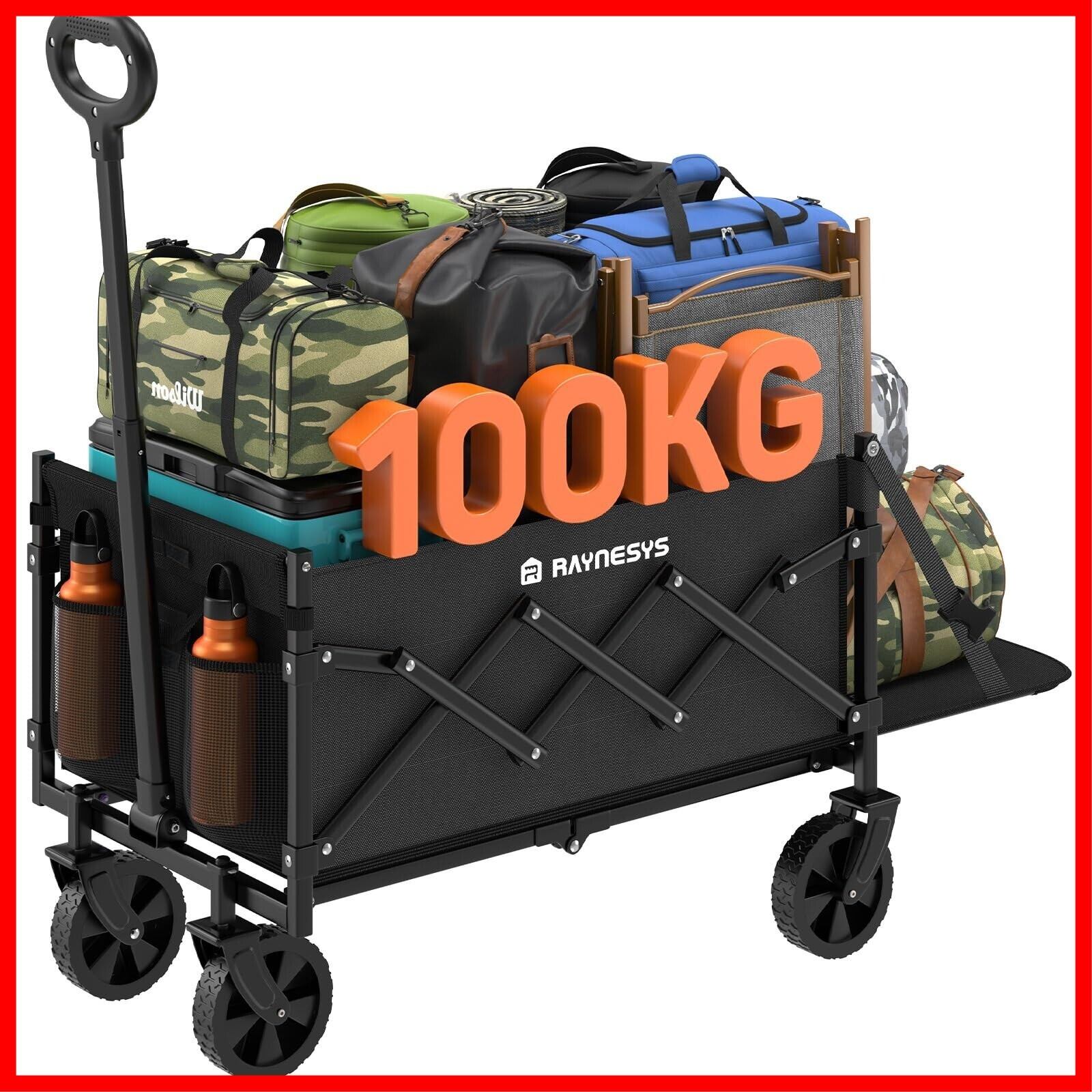 Raynesys キャリーワゴン 【2025新登場】【後部展開可 長物対応】 ミニ 超軽量5.7kg 高耐荷重100kg 容量65L-90L キャンプカート アウトドアワゴン 折り畳み式 持ち運び便利 コンパクト 自立収納 静音 多地形対応 キャンプ/砂浜/釣り/引越し/買い物/ゴミ出し