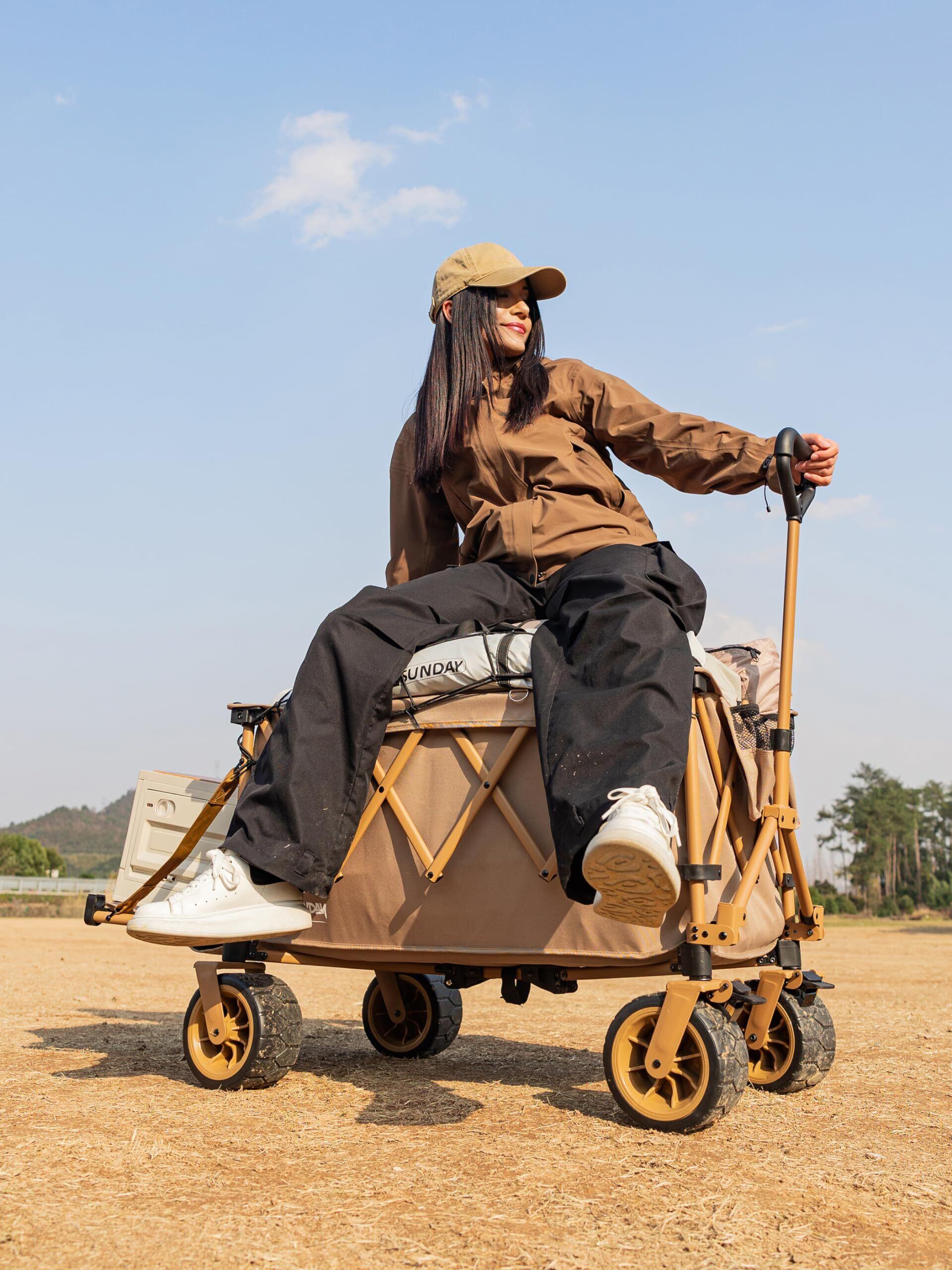 【テールゲート付きワゴン】この大容量ワゴンは、開閉可能なテールゲートを備えた設計になっています。従来のワゴンと比較して、拡張型ワゴンはキャンプ用テーブルや椅子など、さまざまな積載ニーズに対応し、より便利に使用できます。