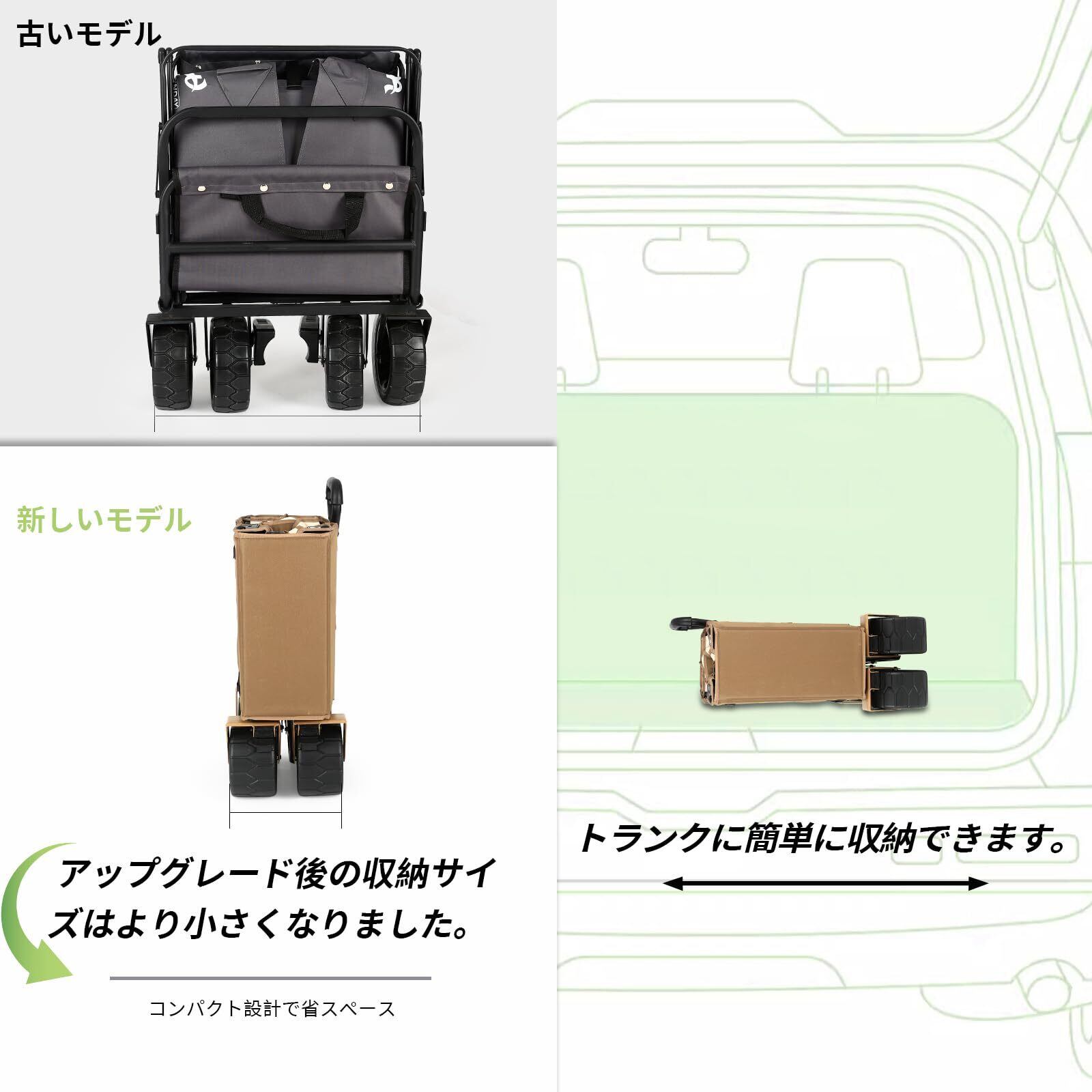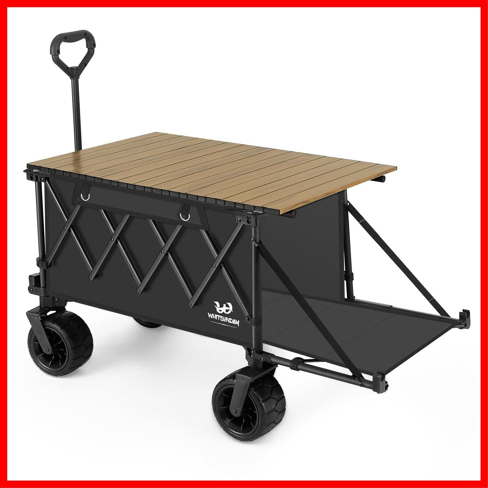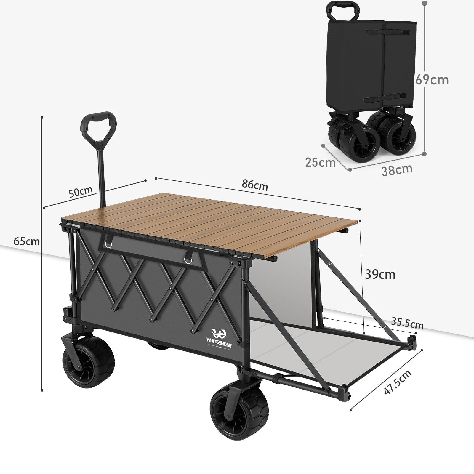アウトドアワゴン 【後部展開可】【テーブル付き】特大容量 耐荷重200kg 長物対応 キャリー 【ベアリング付き】 ワンタッチ収束型 自立収納 キャリーワゴン キャリーカート キャンプカート (黒, 大)