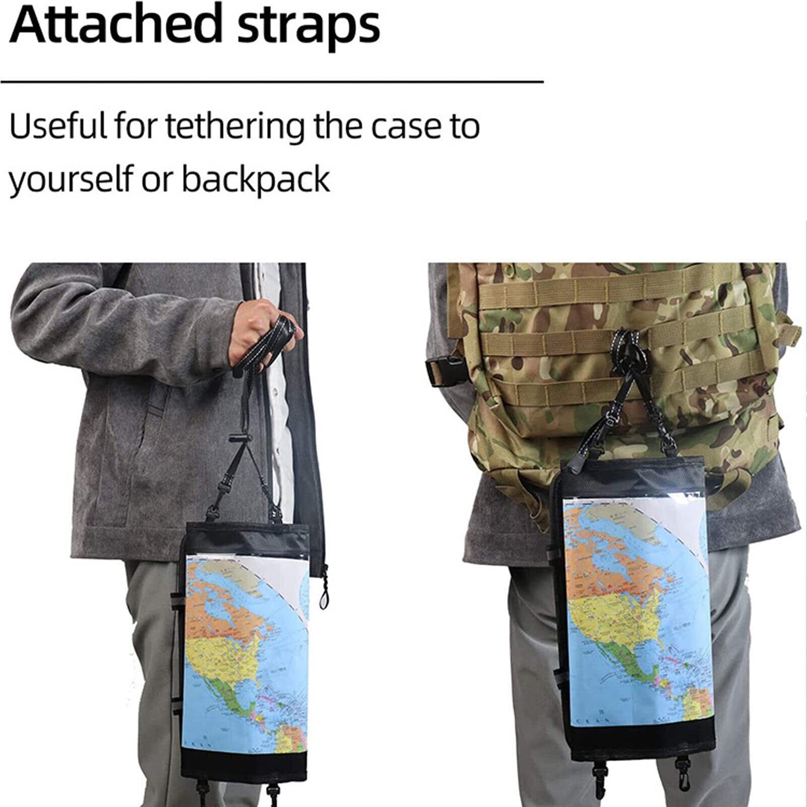 透明ハイキングマップポーチ、透明TPUマップドライケース防水マップケースホルダー防水マップキャリアアウトドアキャンプ用追加ストラップ2本