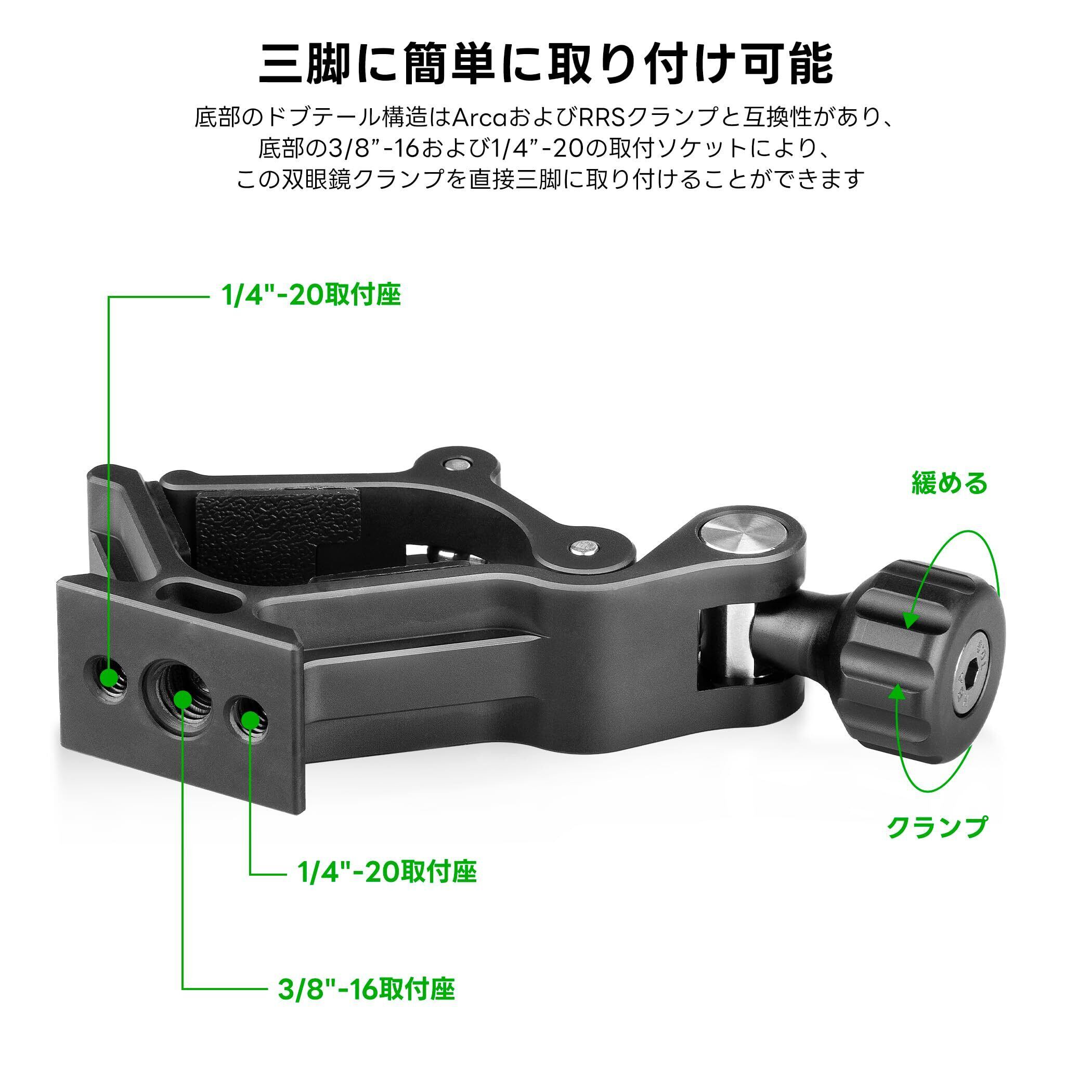 【高品質素材】: CNC精密切削されたT6061アルミニウム合金ボディを採用し、表面には第III級陽極酸化処理が施されており、材料の強度をし、耐腐食性と耐摩耗性も備えています。内側に傾いたクランプジョーは双眼鏡をしっかりと固定し、堅固なゴムで覆われているため、双眼鏡を保護し、滑りを防止します。