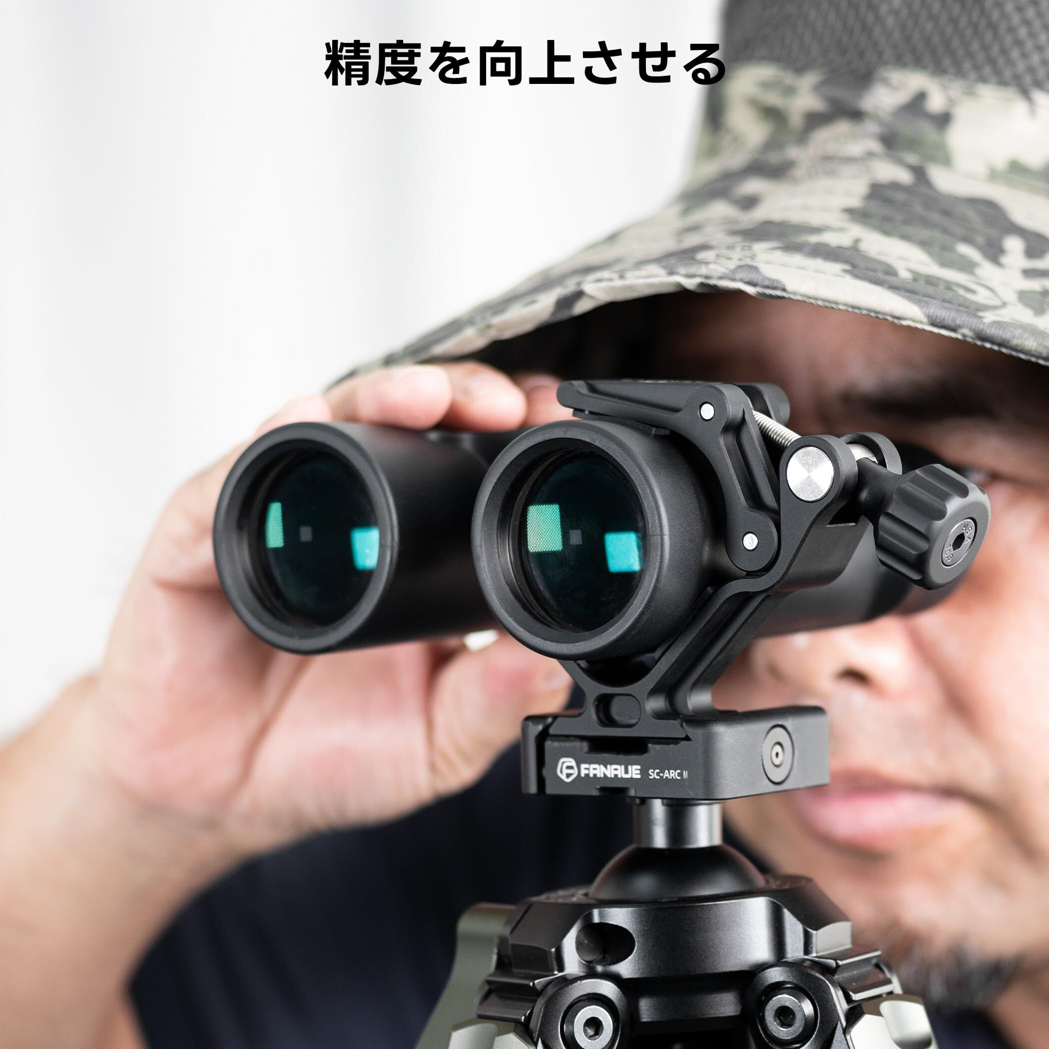 【双眼鏡の精度を向上】: 三脚取り付けインターフェースの精度を向上させるために特別に設計されており、内側に傾いたクランプジョーが双眼鏡をしっかりと固定し、グリップ力をさらに向上させます。すべての角とエッジが丸みを帯びており、手触りと人間工学的な快適さを向上させています。