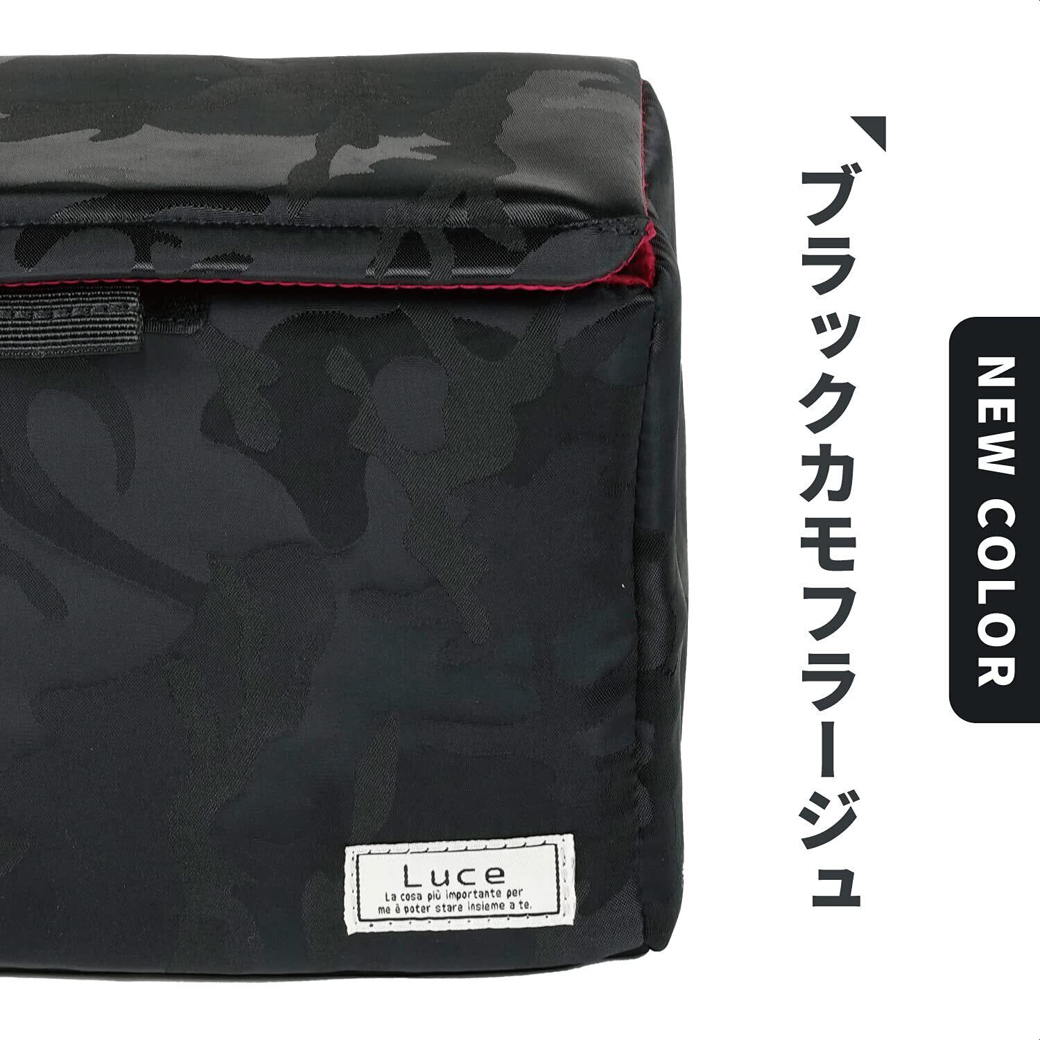 Luceは「ブリックレッド」「ミッドナイトブルー」「ドットアイボリー」「ドットネイビー」「ターコイズブルー」「チャコールグレー」の6色に加えて「ブラックカモフラージュ」「グリーンカモフラージュ」「グレージュカモフラージュ」の3つのカモフラージュ柄を用意。お使いのバッグや好みに合わせてカラーをお選びいただけます。