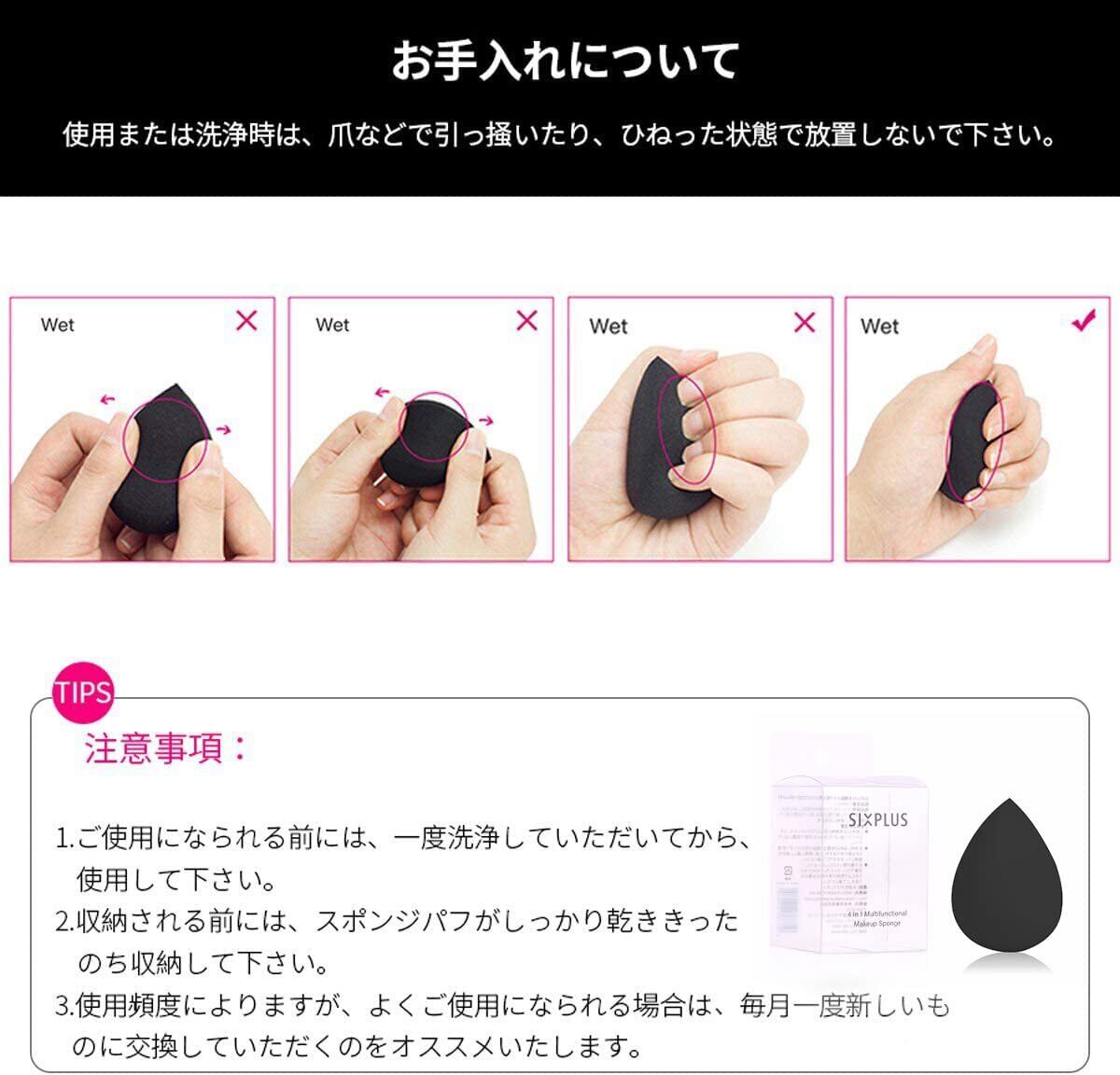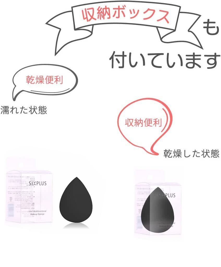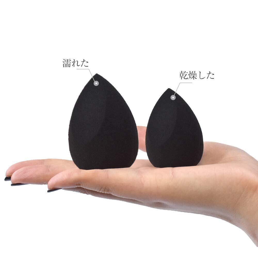 SIXPLUS シックスプラス 多機能メイク用スポンジパフ 化粧スポンジ ドロップ型 メイクアップスポンジ 斜めカット 乾湿兼用 柔らかいメイク道具 ふわふわ化粧パフ メイクパフ(ブラック)