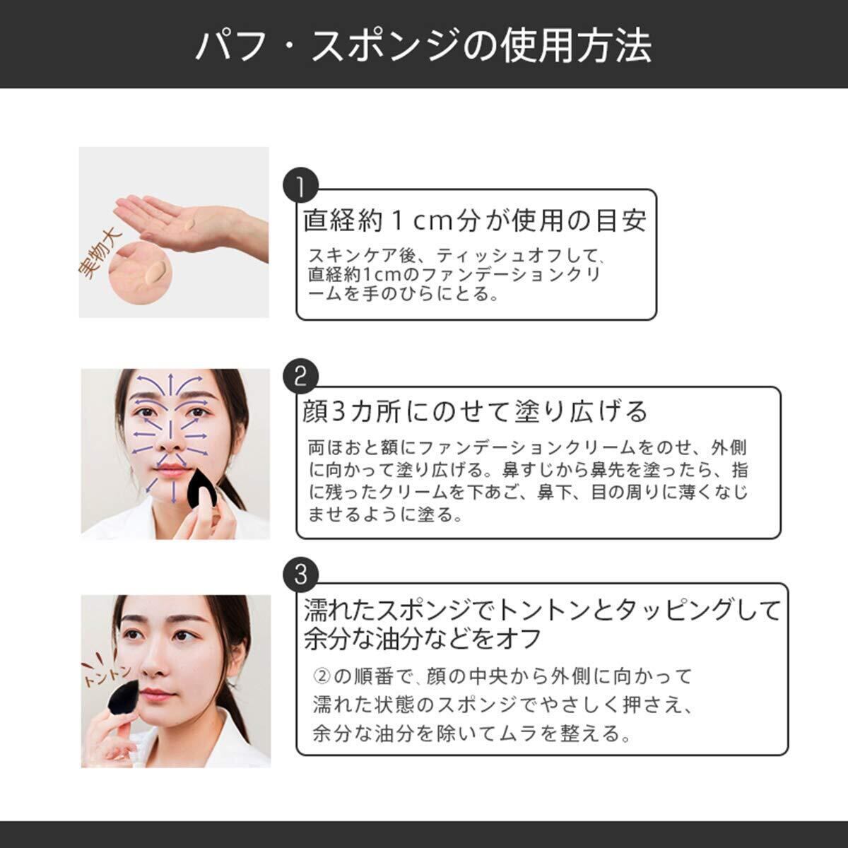 ラテックスフリーを採用し、柔らかく弾力のある手触りに仕上げました。それに、本品は乾燥した状態、湿った状態の2つの状態で、ご使用になることができます。メイクブラシとの併用、メイクブラシを使用しリキッドファンデーションなどを塗ったのち、スポンジパフの平らな面で、軽くたたく事により、余分なメイク、皮脂を落としよりナチュラルに仕上げてくれます