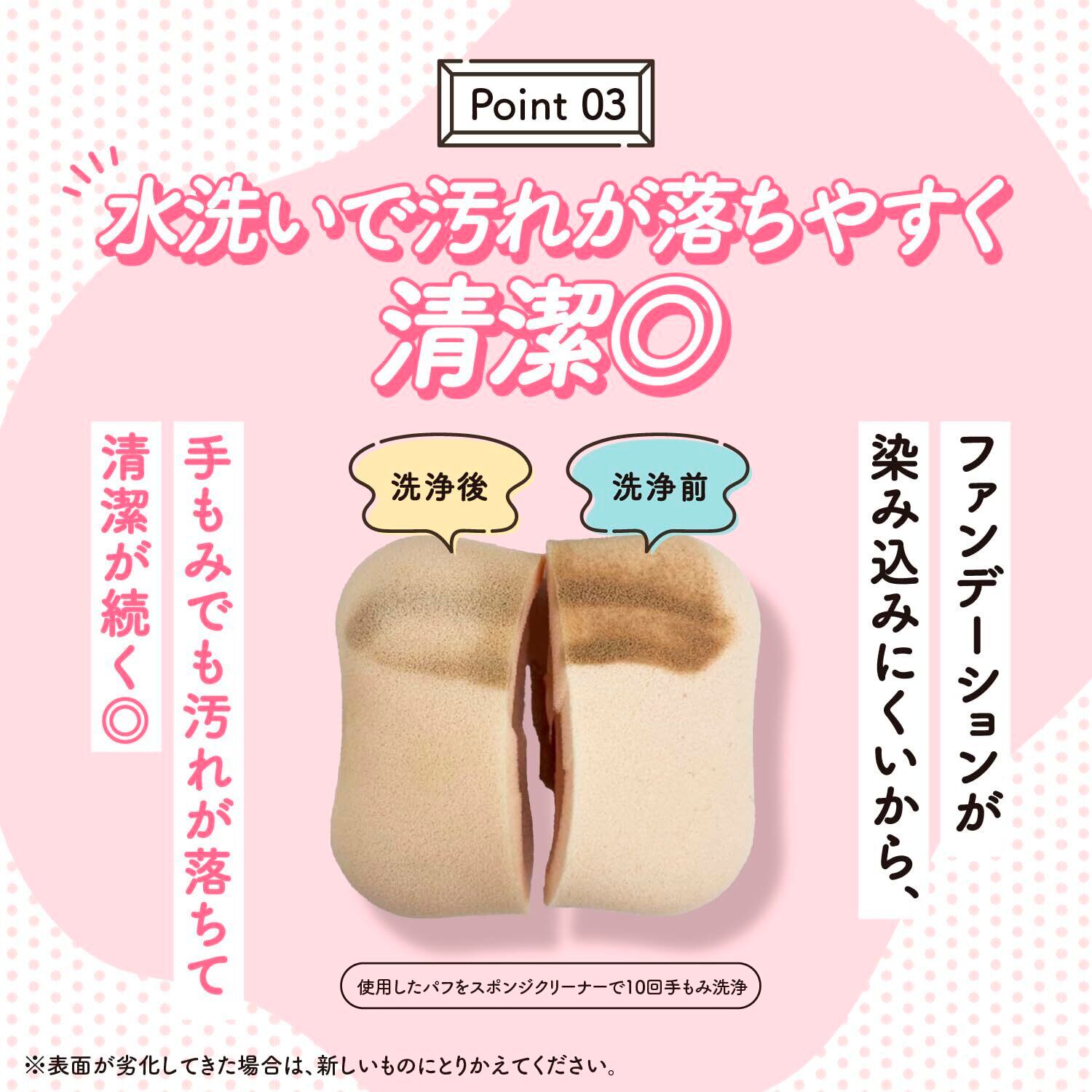【少量のファンデーションでメイクが可能】多層構造のパフのためファンデーションが少量でメイク可能です。