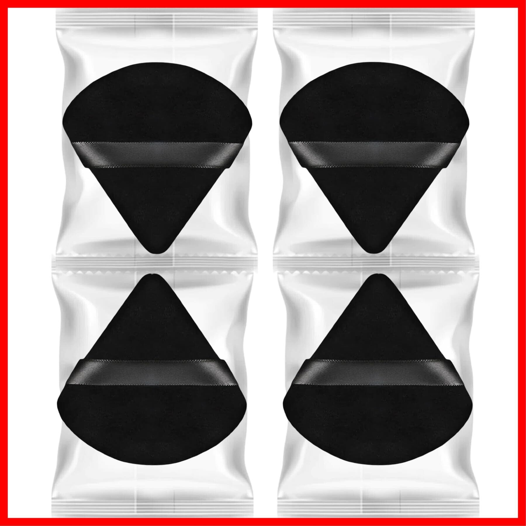 YOYOSOFT パウダーパフ 三角パフ 4個入 細かい部分に対応 幅6.5cm×長さ7cm フロッキー素材 フェイスパウダーパフ 使い捨て 大容量 パフ メイク (黒)