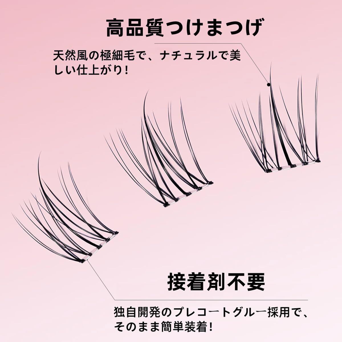 接着剤不要で簡単装着:のり不要のワンステップ装着で、初心者でも手軽につけまつげを楽しめます。短時間で美しい目元を演出できます