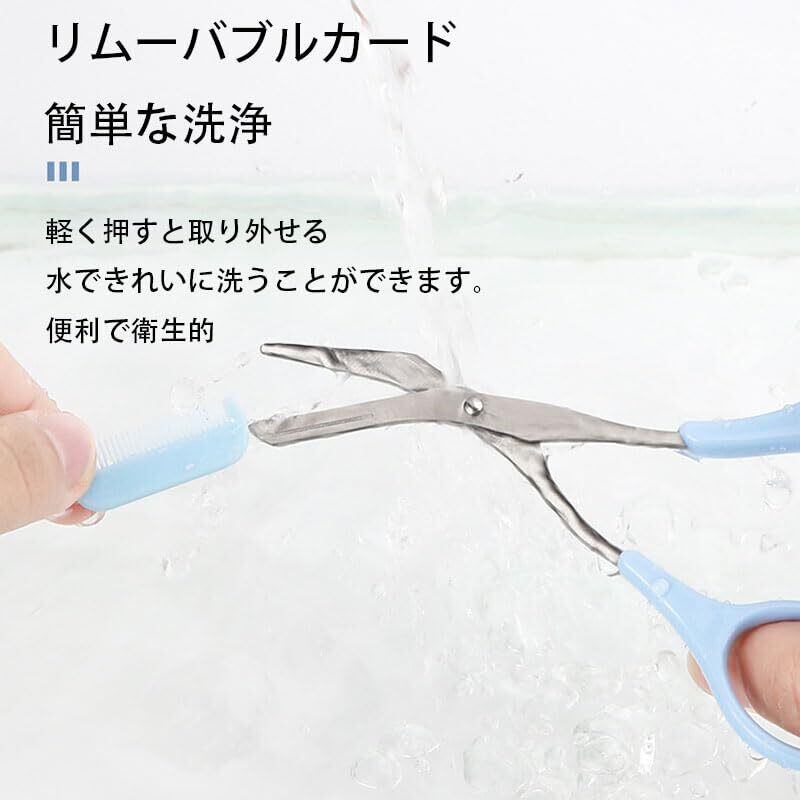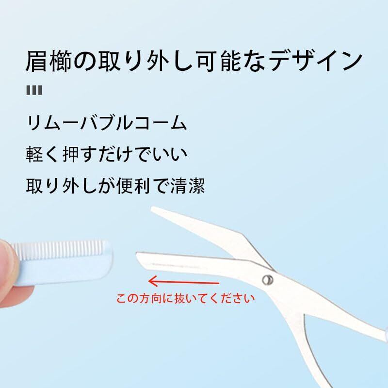 FamGift 眉ハサミ クシ付きマユハサミ ハサミ ステンレス 取り外し可能 防止剪断傷 美容院 最適な 初心者にやさしい 男女兼用(ブルー)