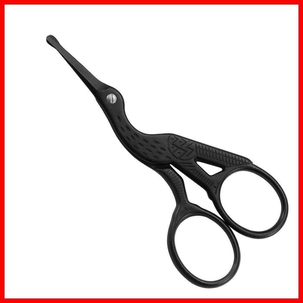 LIVINGO 鼻毛はさみ 丸いセーフティはさみ ビンテージコウノトリシザー プレミアムステンレス鋼甘皮ハサミブラックチタンコーティング 眉毛 まつげ あごひげ 顔の毛 乾燥肌のカット用