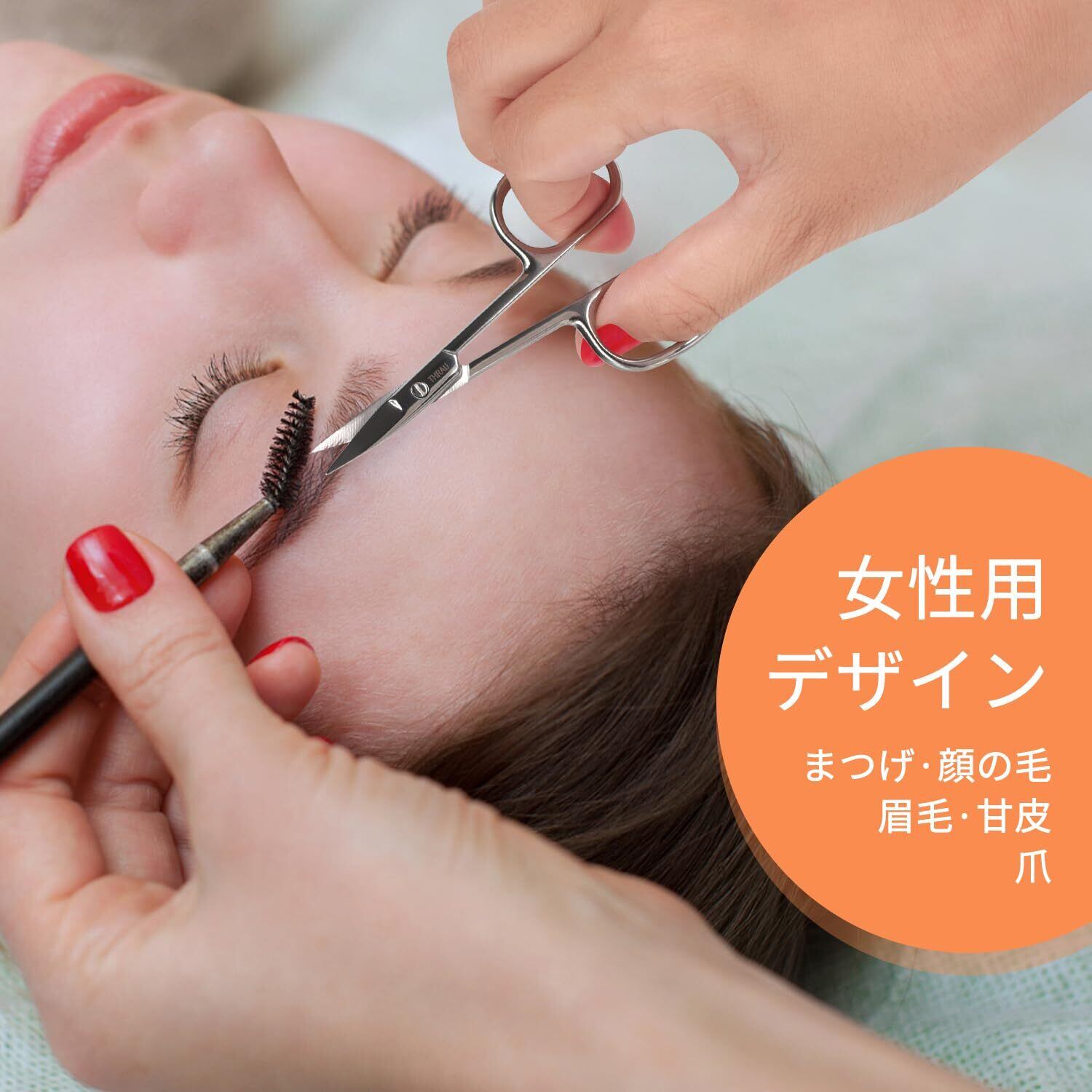 THRAU 高級プロフェッショナル美容ハサミ - ステンレス製多機能小型美容ケアハサミ、角質、爪、眉毛、髭、まつ毛のトリミングに最適 - カーブブレード 96 mm