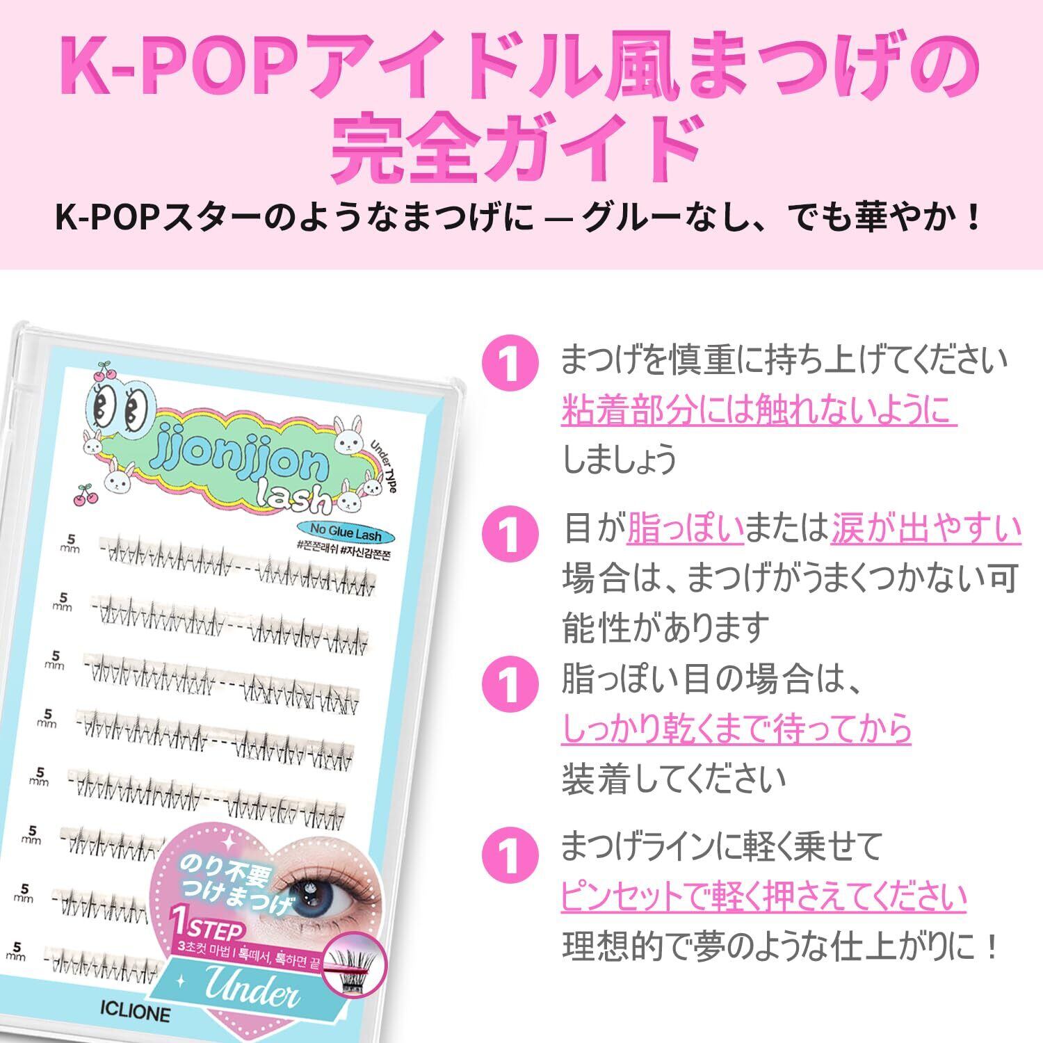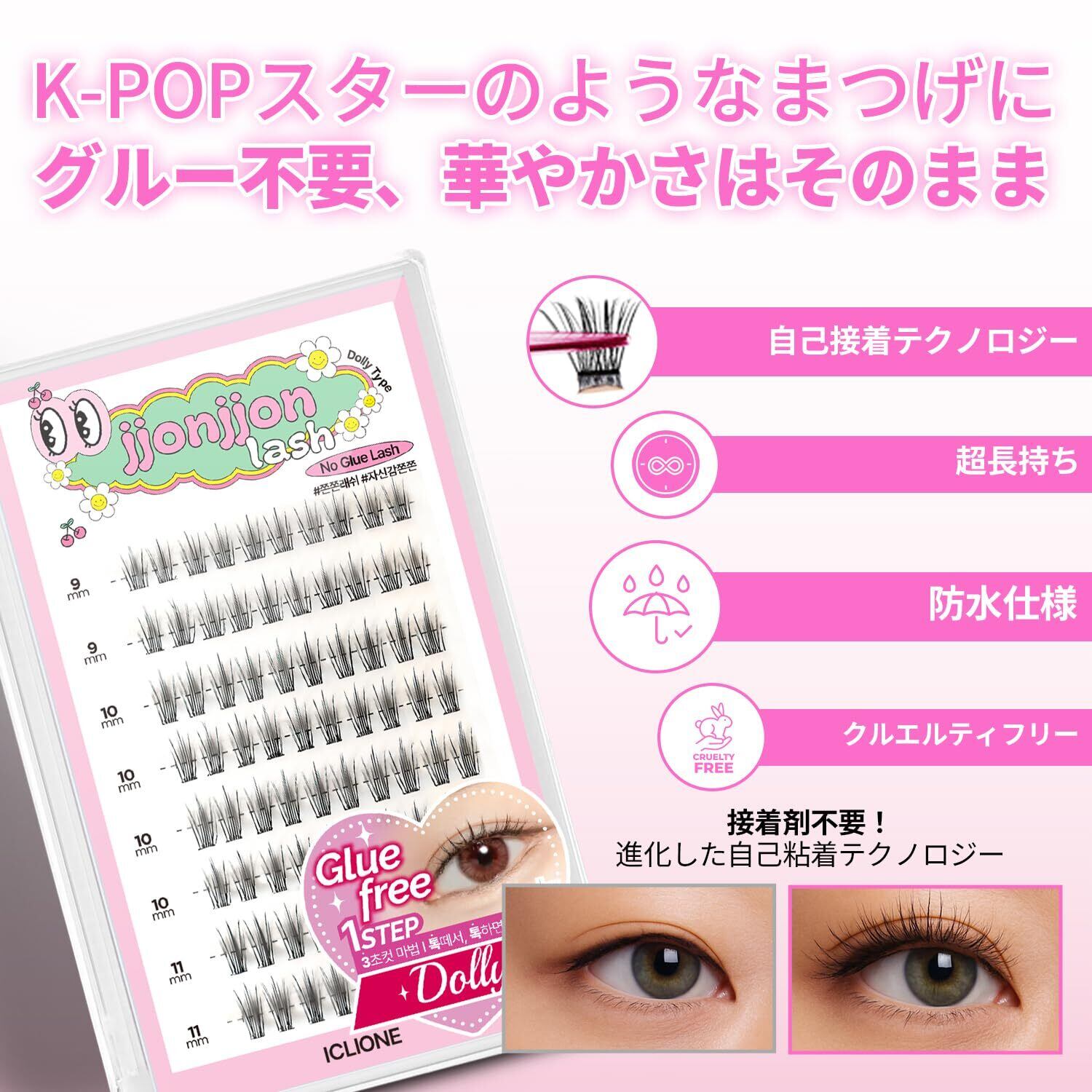 【ICLIONE】jjonjjon lash つけまつげ のり不要ノーグルーつけま 部分用 (DOLLY)