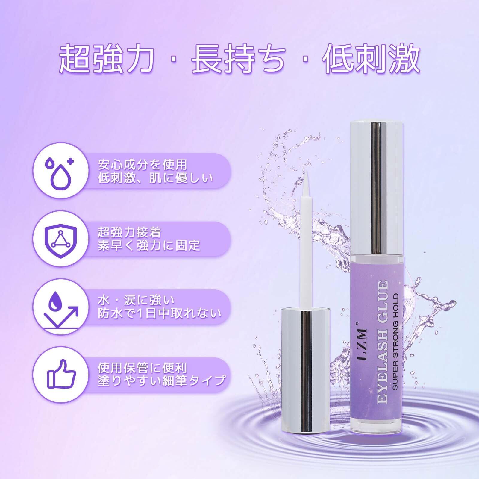 LZM つけまのり 強力 つけまつげ のり 接着剤 つけまつ毛 グルー ウォータープルーフ 24時間持続 透明 速乾 肌にやさしい 細筆タイプ 5ml