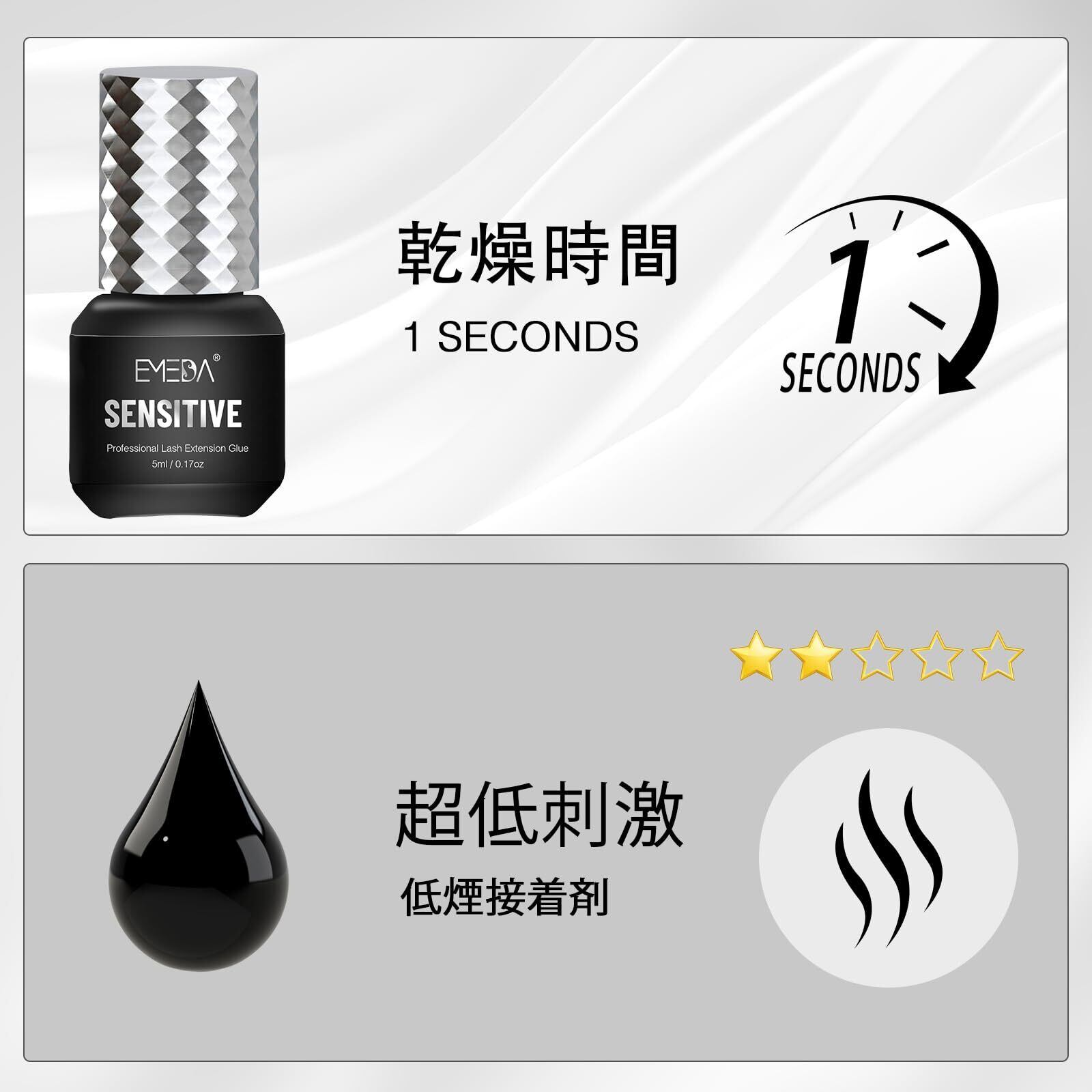 1s乾燥時間:高い技術を持つまつげアーティストのためにデザインしたまつげ接着剤です。速乾性なのでまつげエクステの装着をスピードアップできます