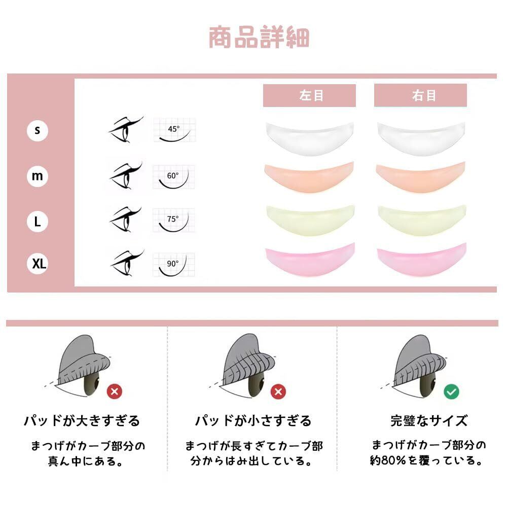 1.【充実のセット内容】】まつ毛パーマ用シリコンパッド8枚セット(Sサイズ2枚、Mサイズ2枚、Lサイズ2枚)。無臭のシリカゲル素材で作られ、快適に使用可能。 2.【自然なリフトアップ効果】従来のパーマロッドと違い、ナチュラルなカールではなく、根元からまつ毛を持ち上げてリフトアップし、より長く・濃く見せる効果を実現。 3.【幅広い目の形に対応】ほとんどの目の形にフィットしやすく、自分用はもちろん、家族や友人ともシェア可能。まつ毛が均一にリフトされ、綺麗な仕上がりをサポート。 4.【繰り返し使える高品質パッド】シリコン製でお手入れが簡単。使用後は生理食塩水で拭き取るだけで再利用可能。サロン用だけでなく、自宅でのセルフまつ毛パーマにも最適。 5.【3サイズ展開で理想のカールを実現】S/M/Lの3サイズが揃っており、希望のカール具合に合わせて選べる。施術が簡単になり、より綺麗なまつ毛パーマが可能に。