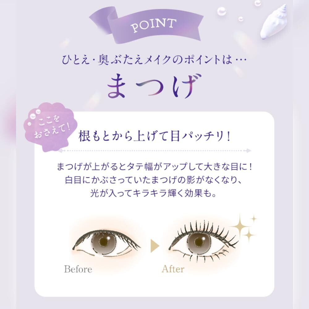 ひとえ・奥ぶたえのまつげは、まぶたの奥に隠れていることが多く、根もとからカールしにくい状態にあります。