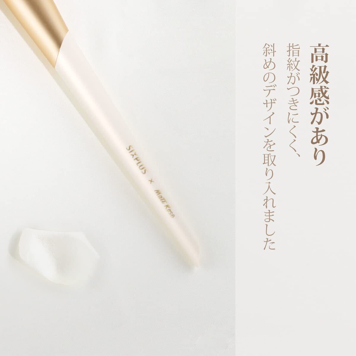 【やわらかな使い心地】お顔のラインにフィットするように、毛先が長くふんわりとした厳選されたナイロン毛を使用しています。毛質は、柔らかくしなやかでふわふわが特徴です。純白なホワイトとゴールドの組み合わせは、洗練されたライフスタイルにピッタリです。