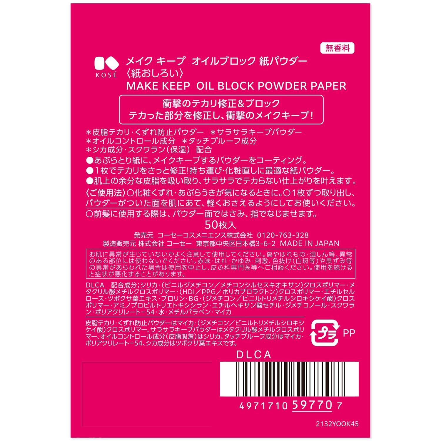 コーセーコスメニエンス メイク キープ オイルブロック 紙パウダー 50枚入 あぶらとり紙 化粧直し 皮脂 テカリ 前髪 サラサラ