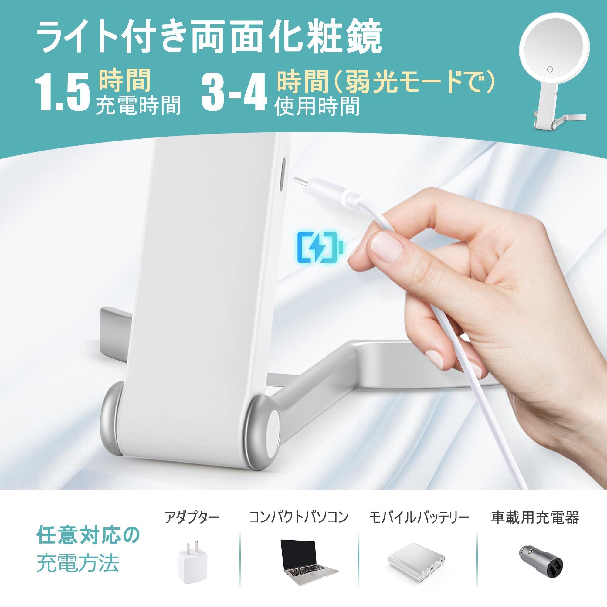 【Type-C充電ポート付き充電式トラベルメイクミラー】この充電式メイクミラーはType-C充電ポートを搭載しており、充電が速いだけでなく、付属のオリジナルケーブルが破損したり紛失した場合でも、充電用の交換可能なケーブルを簡単に見つけることができます。