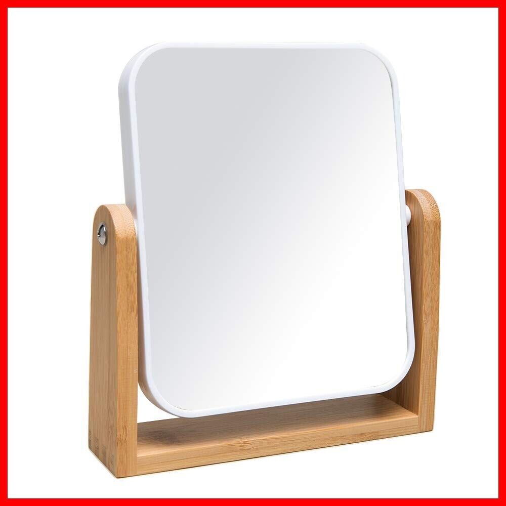YEAKE 鏡 卓上 ミラー かがみ 拡大鏡 360度回転できる天然木製ベースの化粧鏡、倍率は1 X/3 Xの拡大鏡&両面鏡です&スタンドミラー (長方形) 竹と白