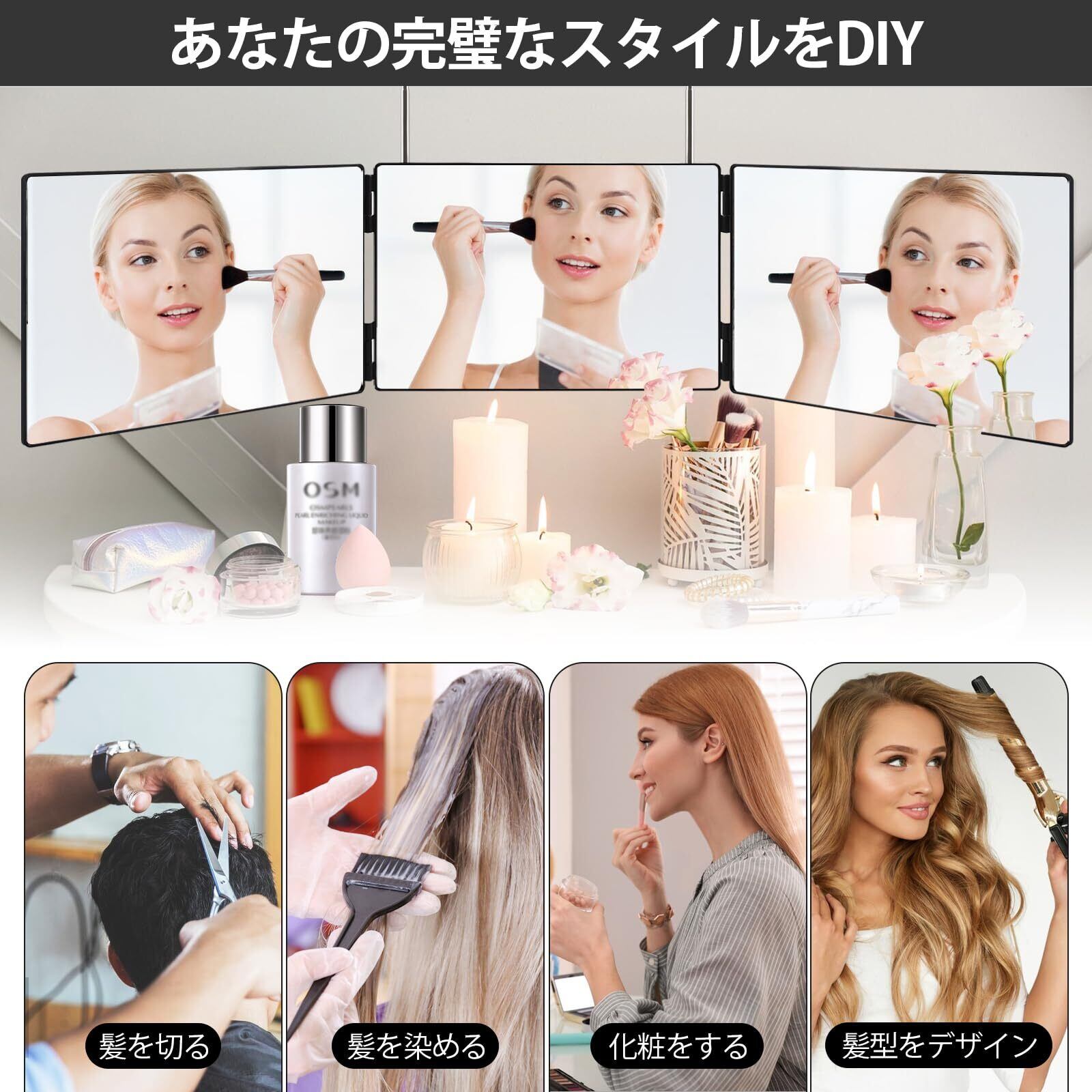 【完璧な角度】三面鏡は、あらゆる角度から頭と顔などを快適に見ることができ、完璧なメイクを作り上げます。広い視野角で盲点を解消し、後頭部を見ることができます。ヘアカット、髪染め、スタイリングなど、この三面鏡はとても重宝します。