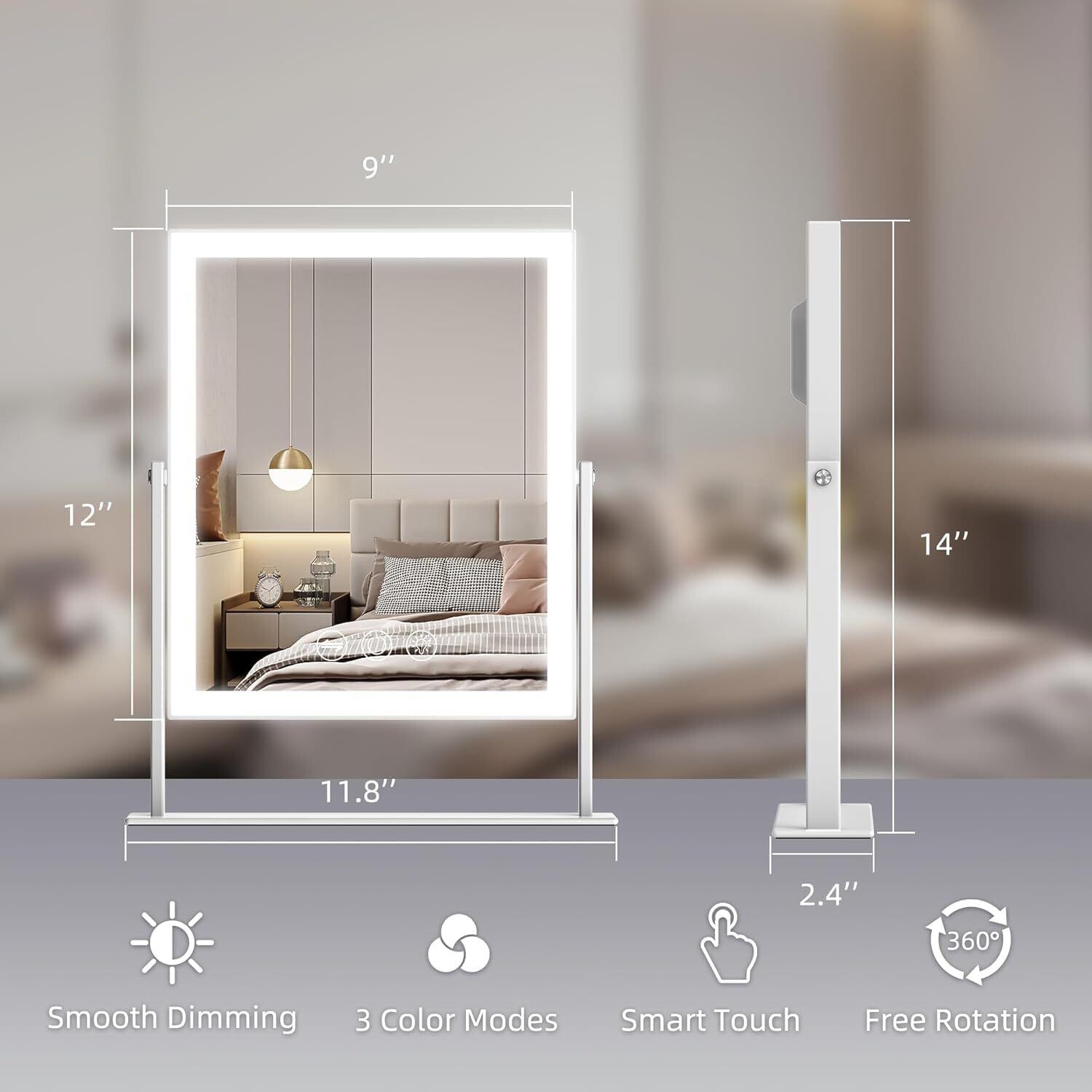 360度垂直回転と耐久性:360度自由回転により、メイクの角度を簡単に調整できます。頑丈なスタンドと底面に滑り止めパッドが装備されており、1つは使用中にテーブルに傷が付くのを防ぐため、もう1つはミラーをより安定させ、滑り止めの役割を果たし、破損のリスクを軽減し、ミラーの耐久性を高めるためです。