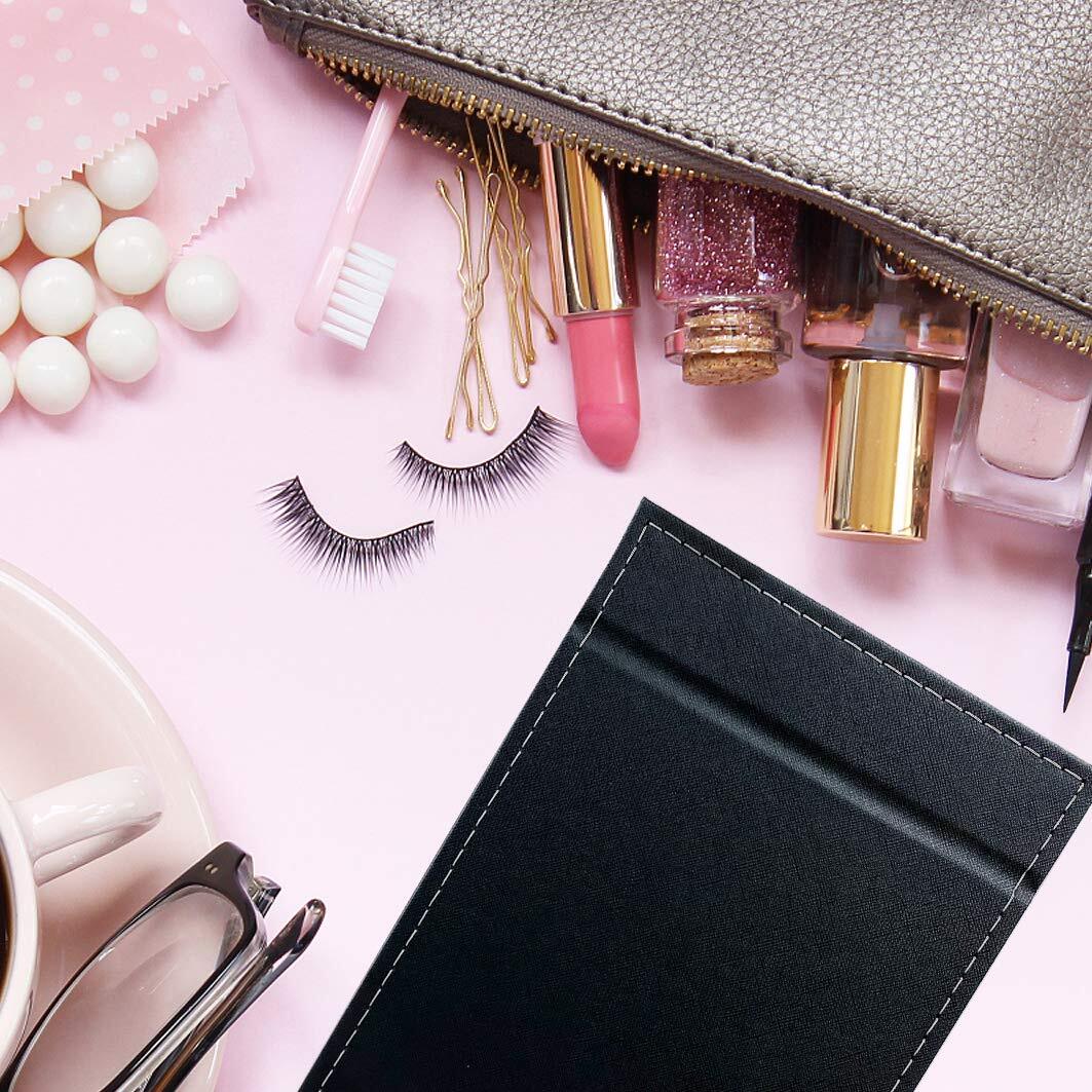 【お洒落で割れにくい】鏡面以外の板鏡が黒風の装丁になっていて、お洒落感溢れ出します。クッション入りのカバーは鏡面を保護してくれるので割れにくいです。
