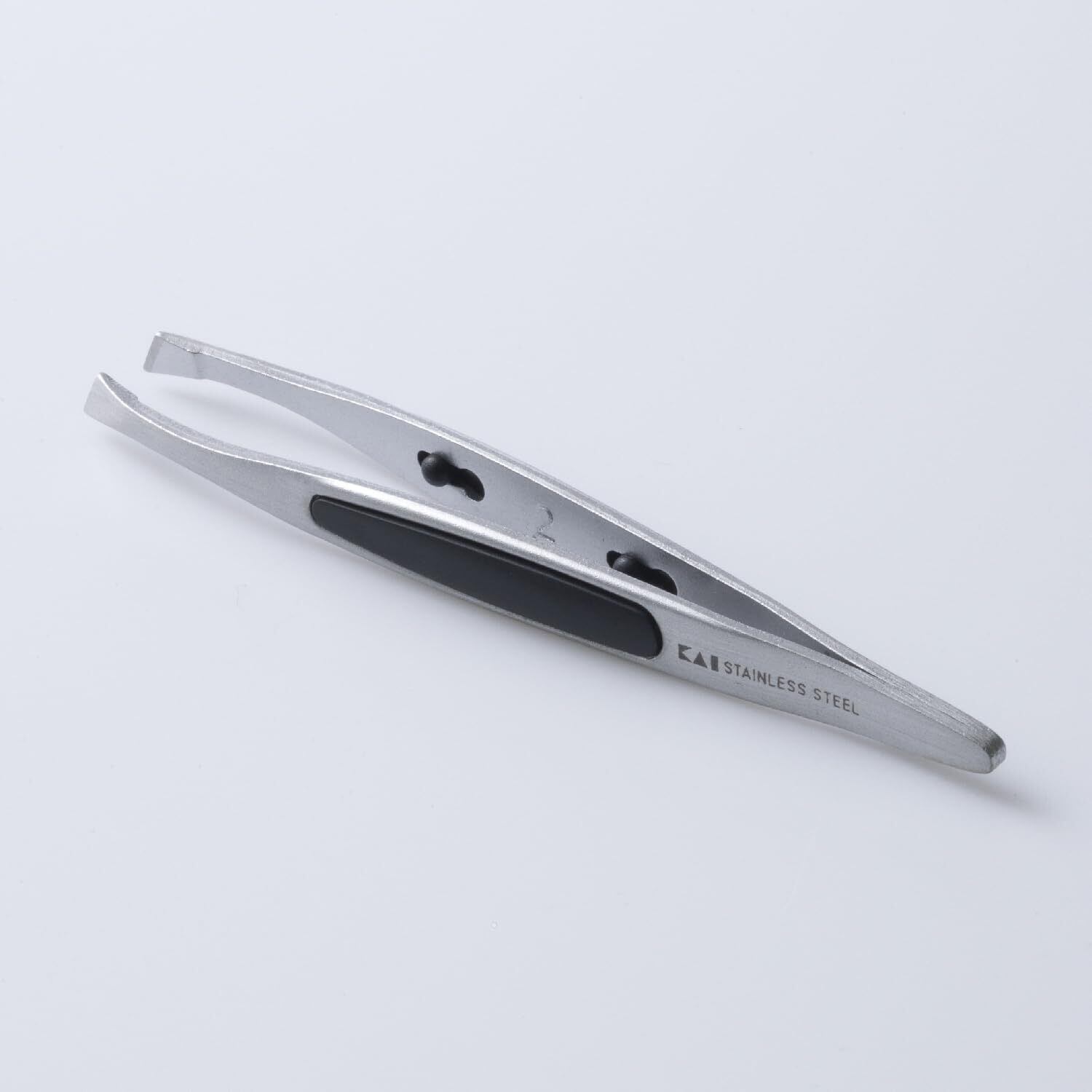 貝印 KAI オシャレ用 毛抜き 先斜 シルバー ピンセット用 すべり止め付 HK0425