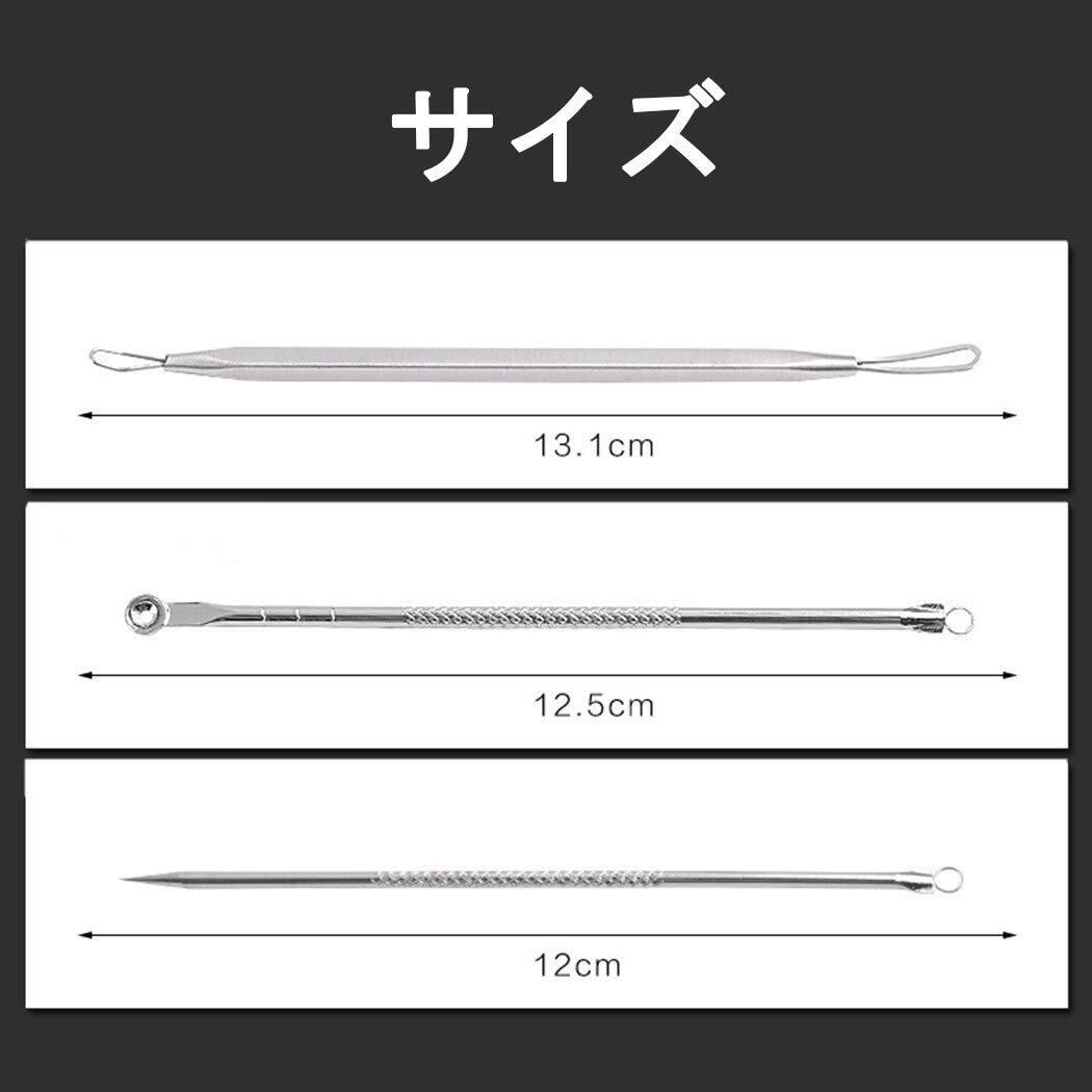 YFFSFDC 毛穴ケア専用キット 3本セット ニキビ針専用キット アクネプッシャーキット 抗菌ステンレス 角栓プッシャー 毛穴角栓すっきりスティック 携帯便利 収納袋付き