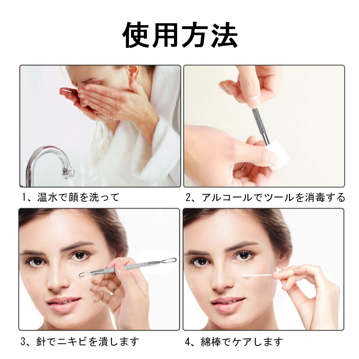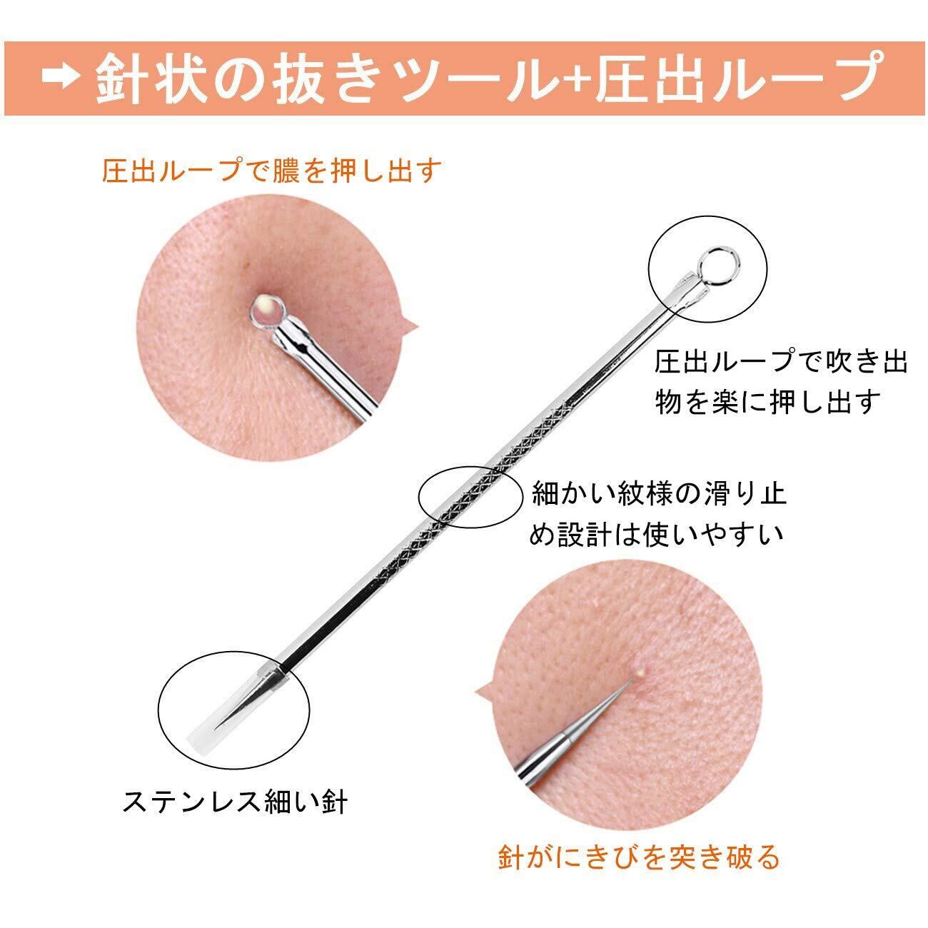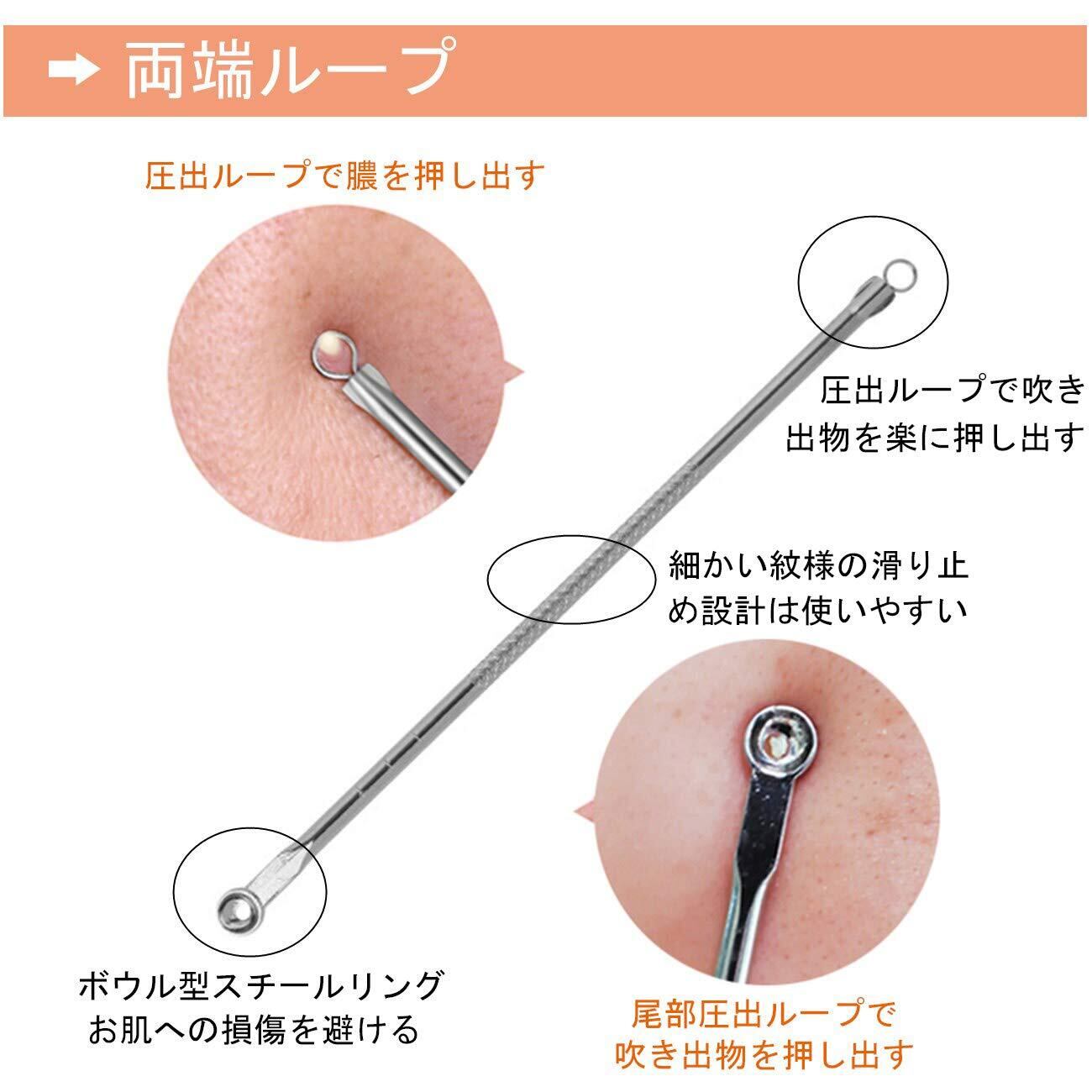 ニキビ専用スティック:3種類のニキビ潰しセットです。このニキビ取りツールセットは両端ループ、針状の抜きツール+圧出ループ、大きいループ+細いループが含んでいます。