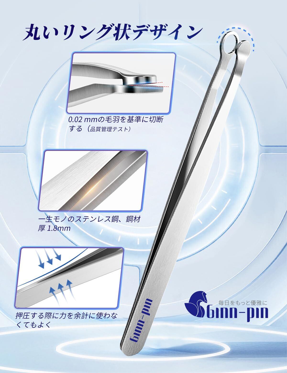 【細かな箇所まで万能対応】 ピンセットタイプの利便性に加え、簡単な操作で、鼻毛以外にも「眉毛」「まつ毛」「もみあげ」など、普段手軽に整えにくい細かい毛をも簡単に手入れできます。しかも、リングタイプの刃先設計により、肌にダメージを与えることはありません。1 機で多機能なこの製品は、あなたの美容ライフを一層充実させます。