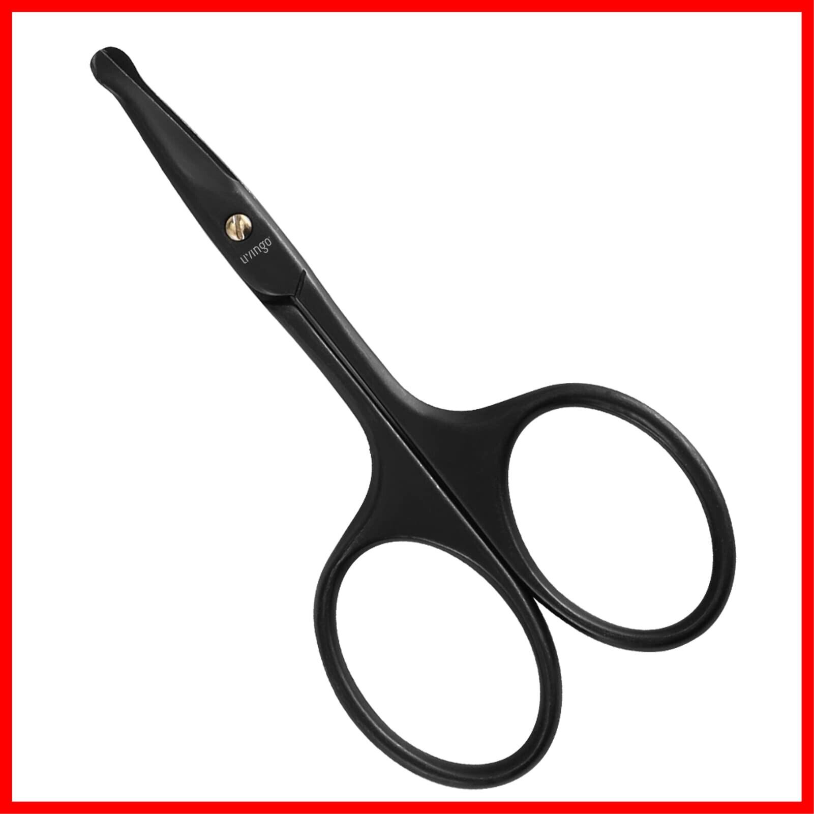 LIVINGO 鼻毛はさみ 丸いセーフティはさみ 鼻毛切りシザー プレミアムステンレス鋼 曲刃 先丸 眉毛ハサミ チタンコーティング 化粧男女兼用 (ブラック) 収納ボックス付き