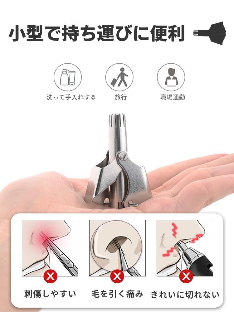 【持ち運び便利】 鼻毛カット 手のひらに収まる小型サイズなので、デート、散歩、旅行や出張先などへ持ち運びにも便利です。手動式なので電池不要・充電不要、いつでもどこでも使用可能です。