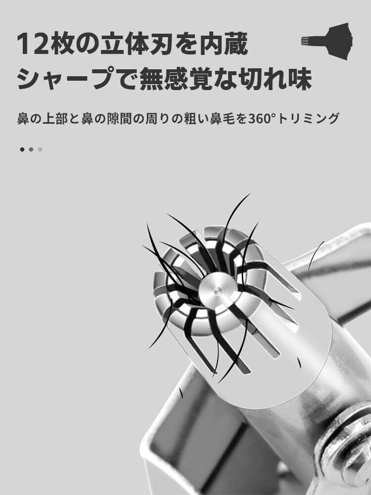 【引っ張り感なし】 鼻毛トリマーは熱もないですし、鼻毛も引っ張らないです。12個の両刃ブレード技術を採用し、無痛で快適なトリミング体験を提供します。