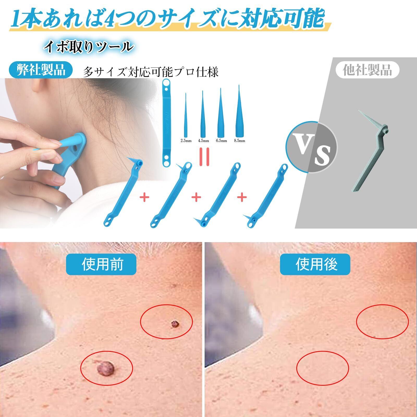 イボ取り セルフ処理ツール イほ’’除去 スギンタクリムーバーツール 1本で4サイズのゴム輪 2.5mm 4.5mm 6.5mm 8.5mm